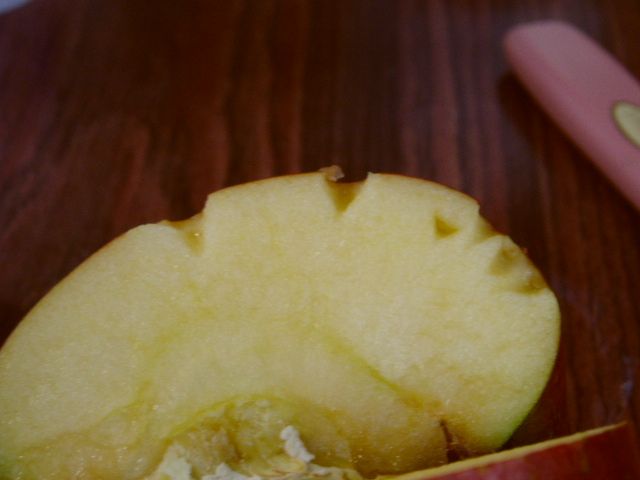 おばぁがりんごをつかんできて‘一緒に食べようね’と、ひとかけ剥きはじめた。