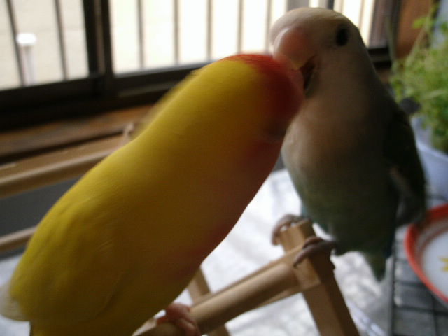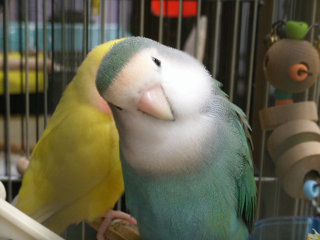 ラブバードさんはもともとお顔つきが笑ってるようにも見えますが、楽しい時はそう見えるだけじゃなくって笑ってんのよぜったい!