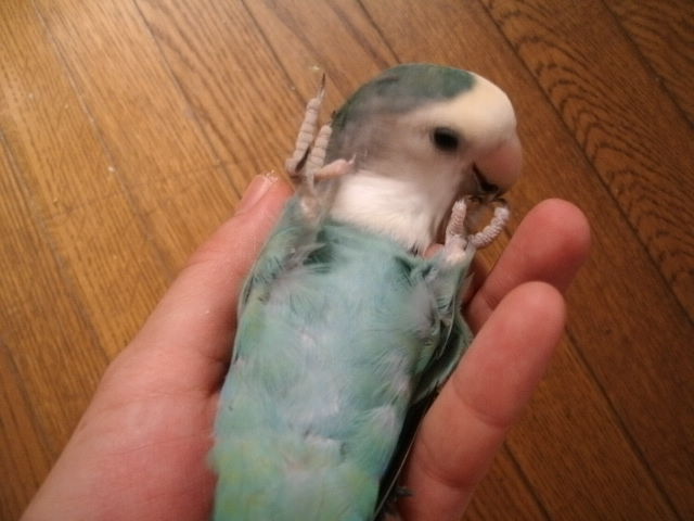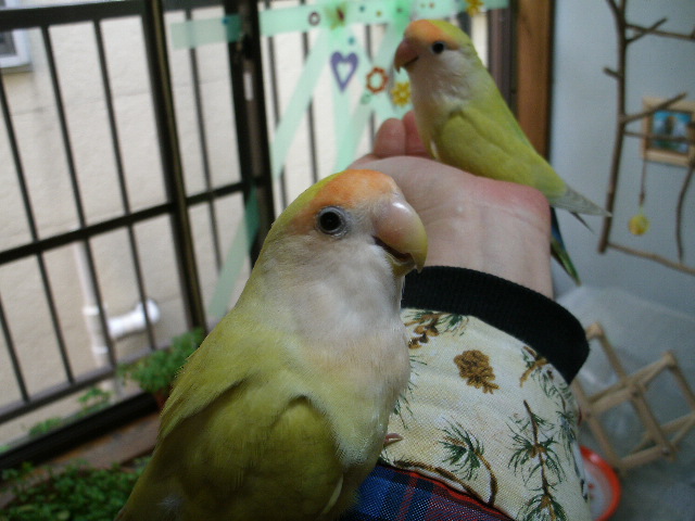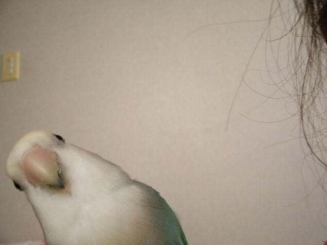 そらちゃんはとってもとっても優しいお子でしてねぇ、いっつも人の肩の周りで遊んでるかわいいお子ですが、触られるのは大嫌いのようでございます。それともお触りはまるこさん限定なのか??