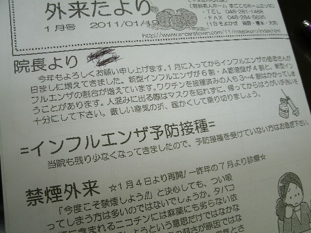 ところで・・・ところでですよ、1月に入ってからインフルエンザの患者さんが増えてますよ~と、ご近所の病院からの外来たよりがポストに入ってたり