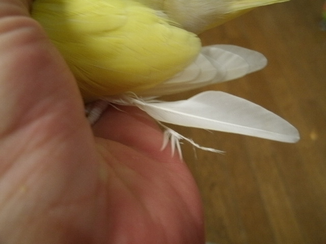 よく抜けたデカ羽を振り回してへし折ってるのは良く見ますけど~、これまだ抜けてませんからっ