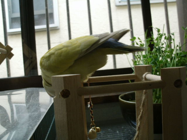 まめちゃんは独身女子ですが、けっこーポコポコとタマゴを産んじゃうので、ケージ下に敷き紙入れません。入れるとどーにかこーにか引っ張り出して噛んで巣材作りに励んじゃうのよね。