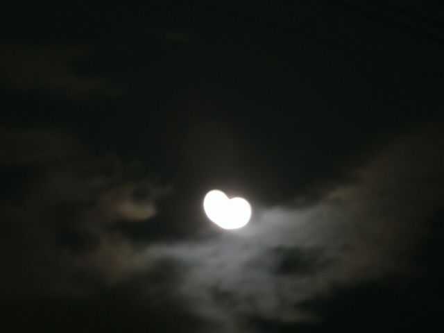 ラブリーなおばさんがカメラを向けたもんだから、お月様もハート型にブレてくれました