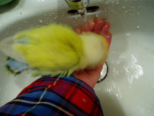 おりこうさんまめちゃんは腕に乗ってケージが洗い終わるまでまってますのよ。