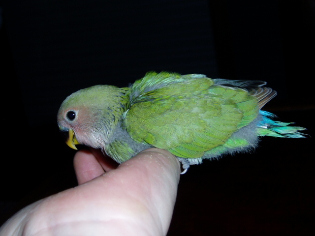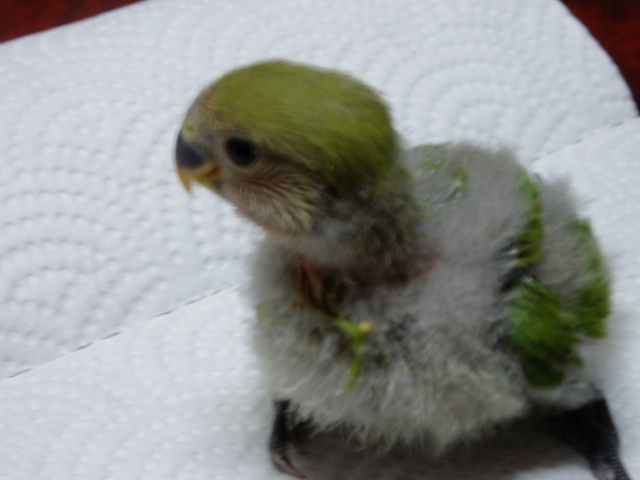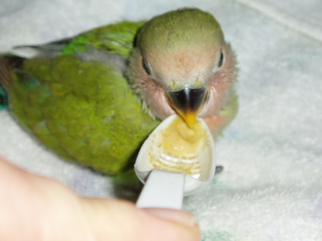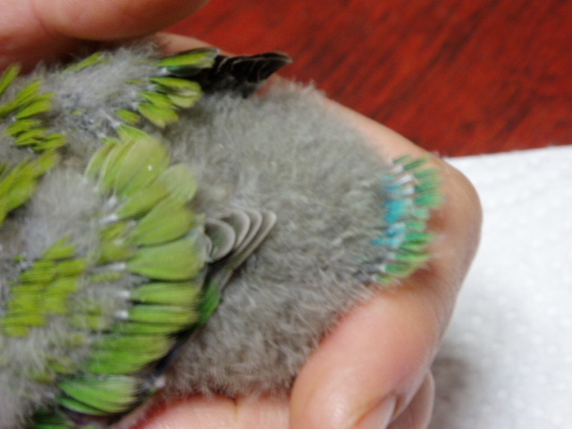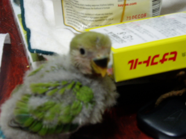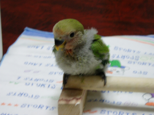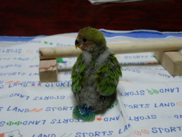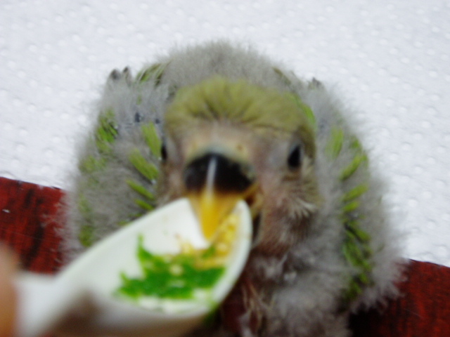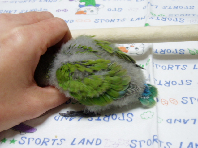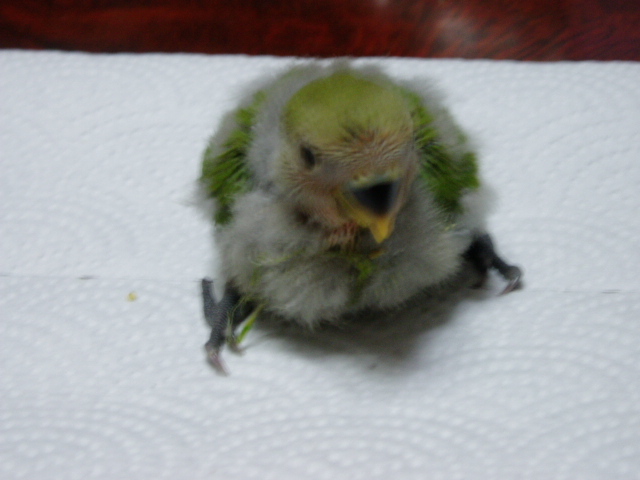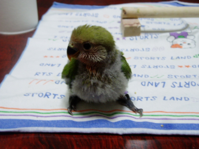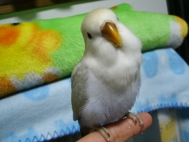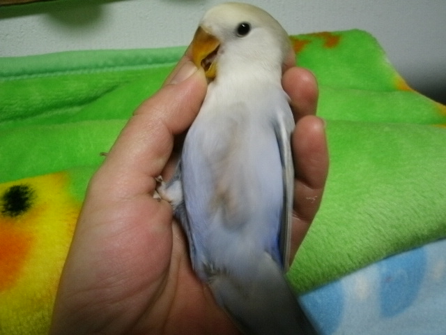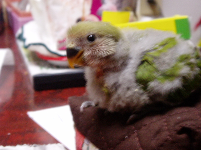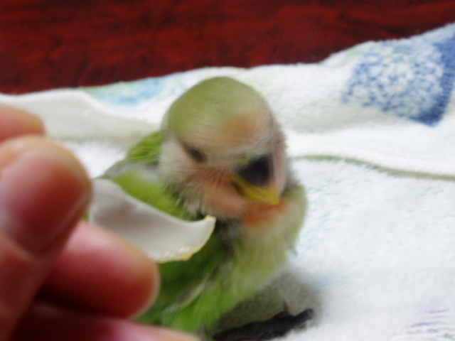 5羽兄弟の一番上のお子だそうで、雛っこ同士でくっ付いてた時はチョー雛雛してましたが、うちにつれて帰ったとたんにやけに大人びましてー、挿餌もクチバシでパンパパーーンッと弾いて拒否ってのすっかりひとり餌してます