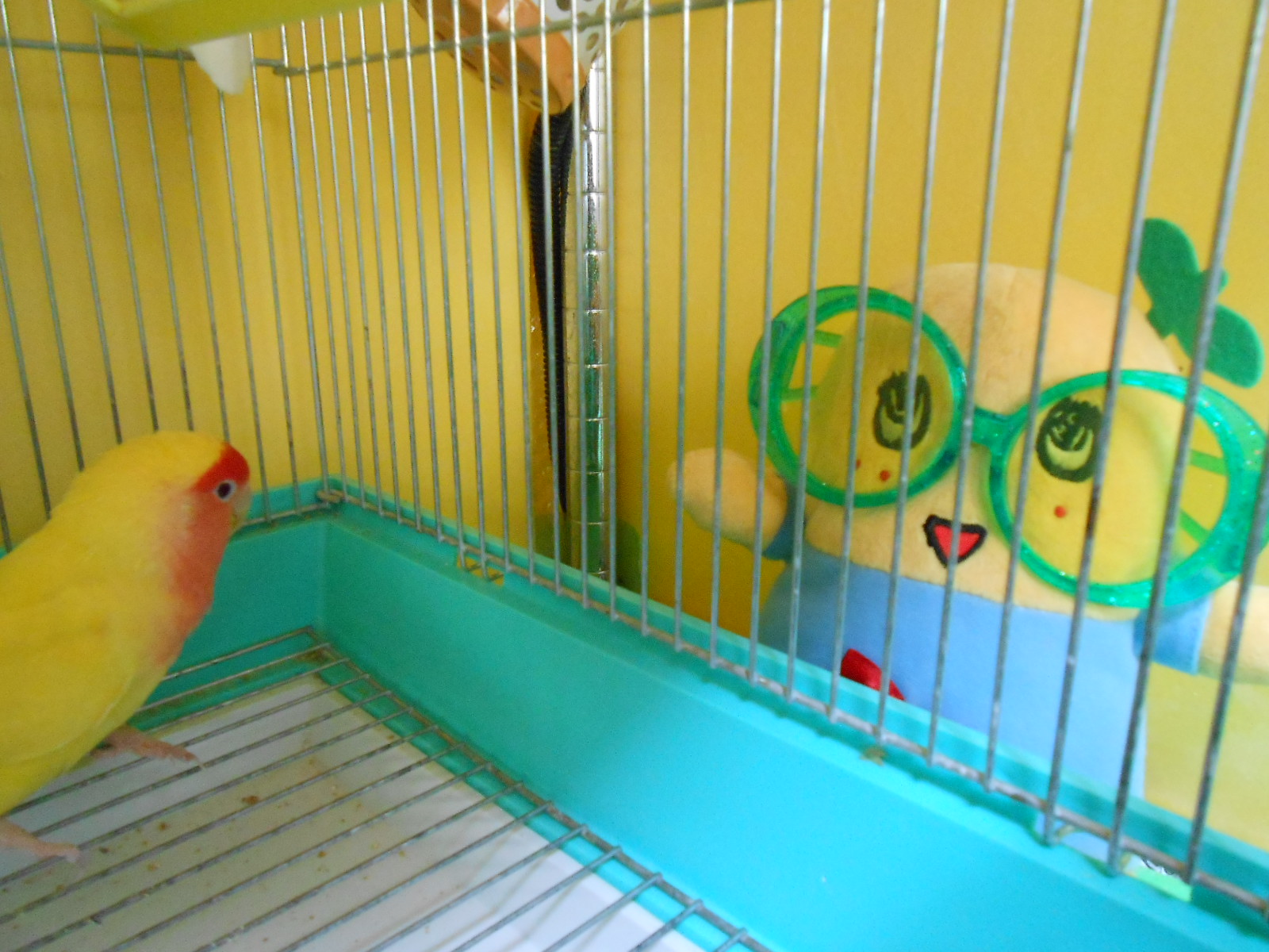 ってことで止まり木もブランコも全撤去のなんにもないお部屋になるのぽーちゃん