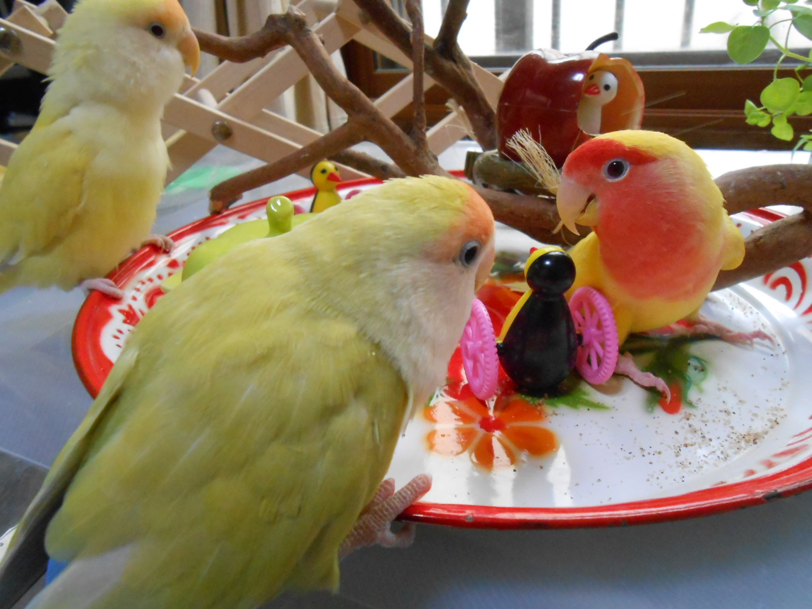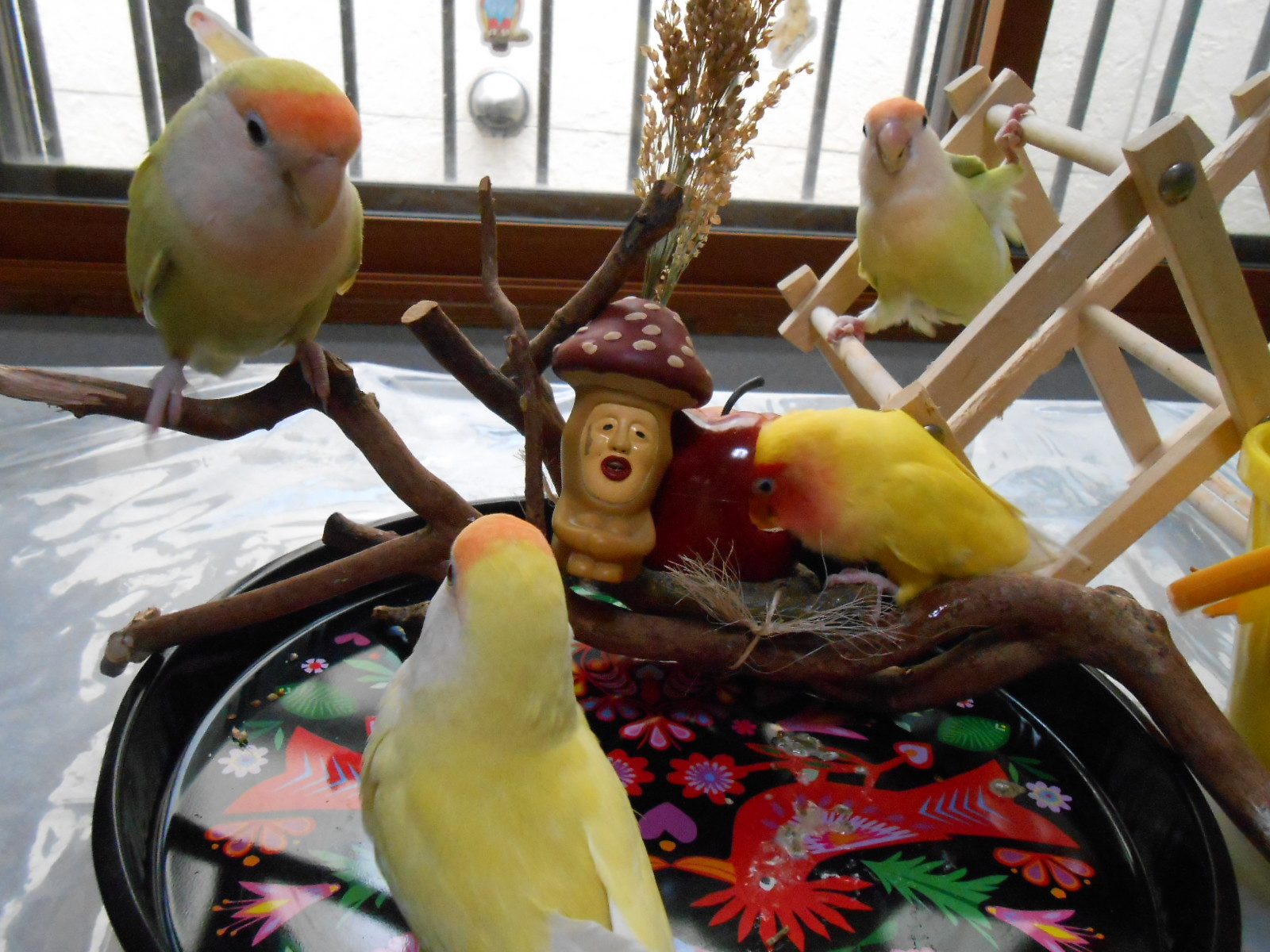 おやつ食べてもムラムラに影響しない鳥さんにはコッソリおやつ出しちゃってんですけどね、黄色い女子さんたちには内緒ですよ!見つかるとチョー怖いですからっ