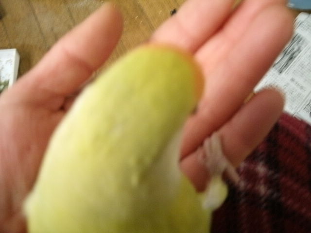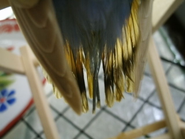 そんなまめちゃんのしっぽにも長~い筒に包まれた新しいお毛毛が2本ニョキンと。換羽なのよねぇ・・・。