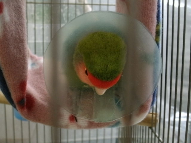 判断付かず・・・と言うより、毛引き症ってことを認めたくなかったわねー。きっと、きっと、換羽の延長よ!・・・と言う方向に自分の気持ちを向けてしまいましたが、何をどう工夫しても毛引きは止まらずー。