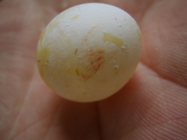 すでに穴開いてます。食べちゃうのはいいんだけどさ、薄皮ザラ子なタマゴでちょっと血も付いてますよー。