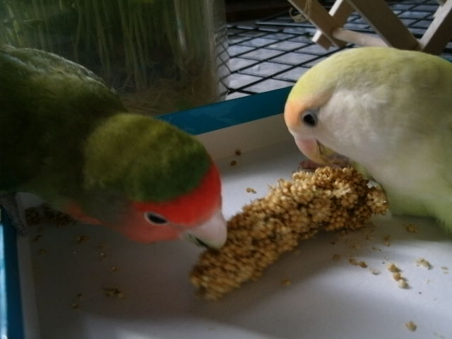 みんなの大好物といえば粟穂さんなんですけども、先日粟穂さんをお股に挟み込んでスコスコするという個性的な召し上がり方(?)を目撃して以来、しばらくおあずけにしてたんですけども~。今日は出しましょうかねぇ。