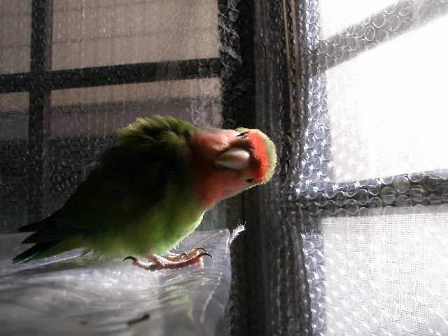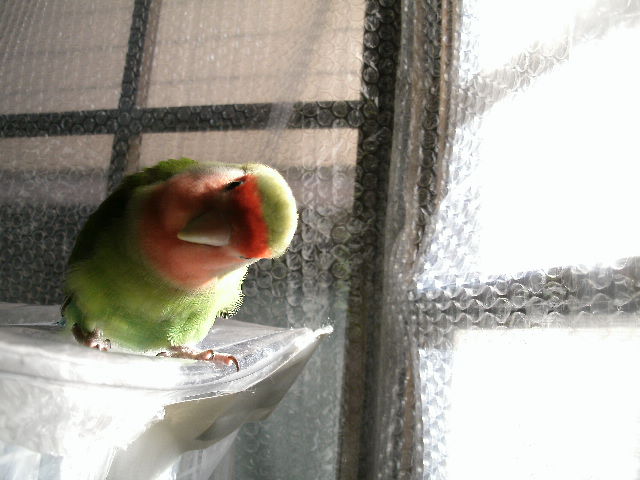 午前中にちこっと差し込む太陽に向かってぴーちゃんが