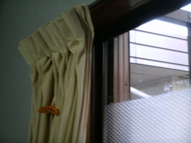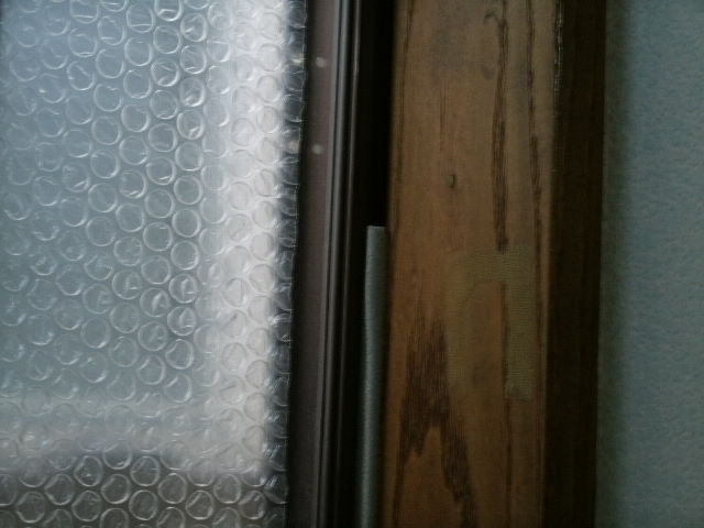 まずは寒気進入禁止対策でさらに別の窓にもプチプチを。
