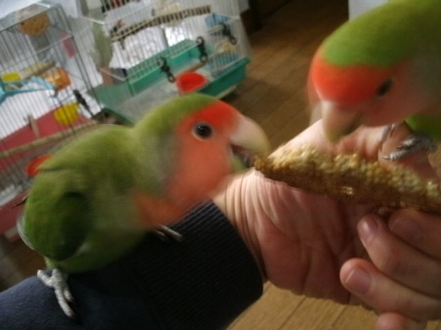 ぴーちゃんとげんちゃんはそれな~りに一緒におやつを食べてるいいコさん。