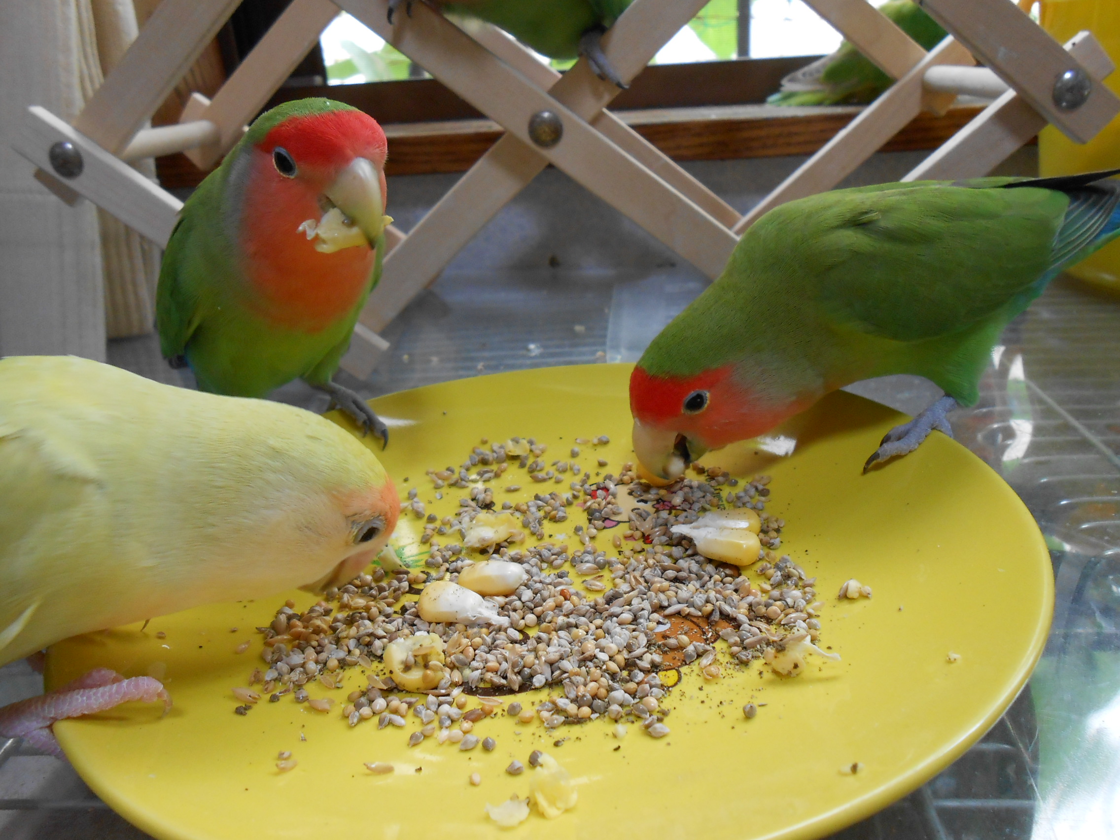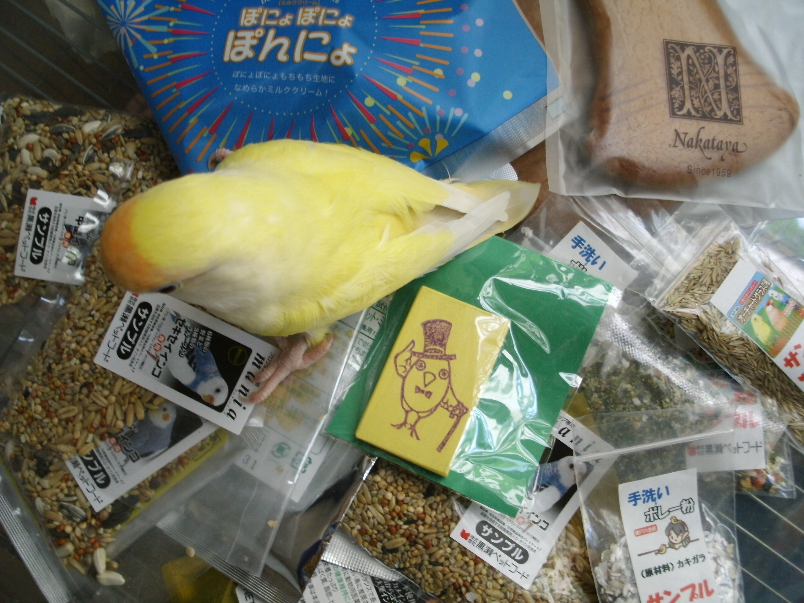 個人的には加工餌よりそのままの形の食べ物(シード)を信用してるんですが、なんせいいとこ鳥したいので結局両方ないと心配ー。みたいなテキトー度。