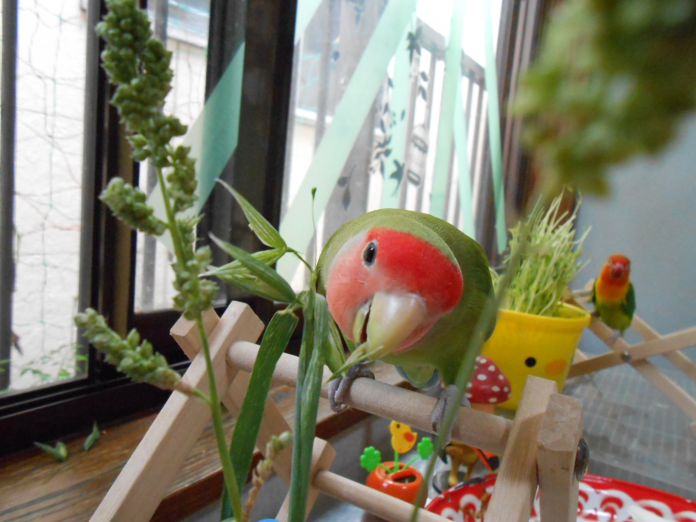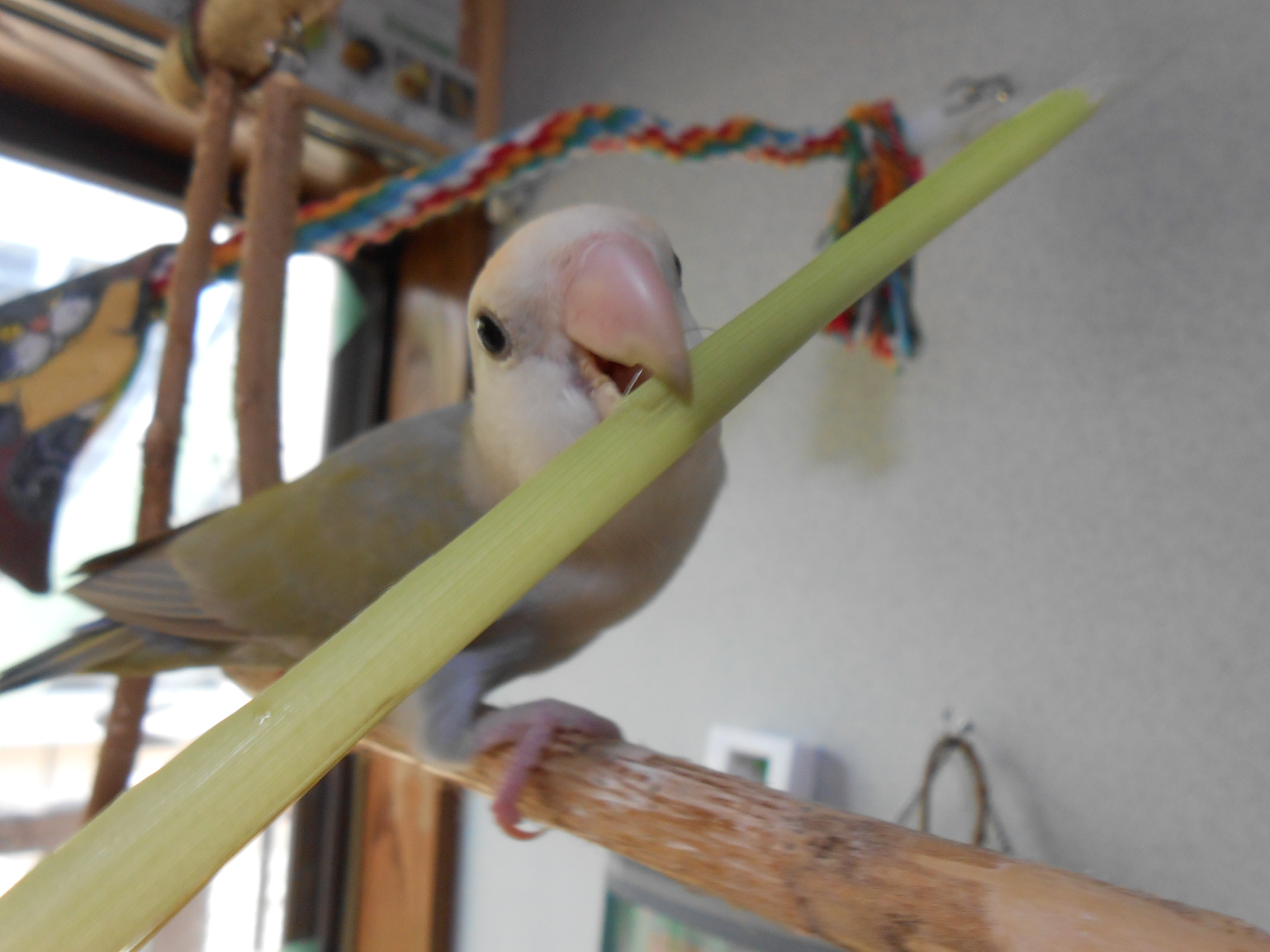レモングラスの葉っぱを噛むなんざ鳥さんにとってはおちゃのこサイサイ♪で、