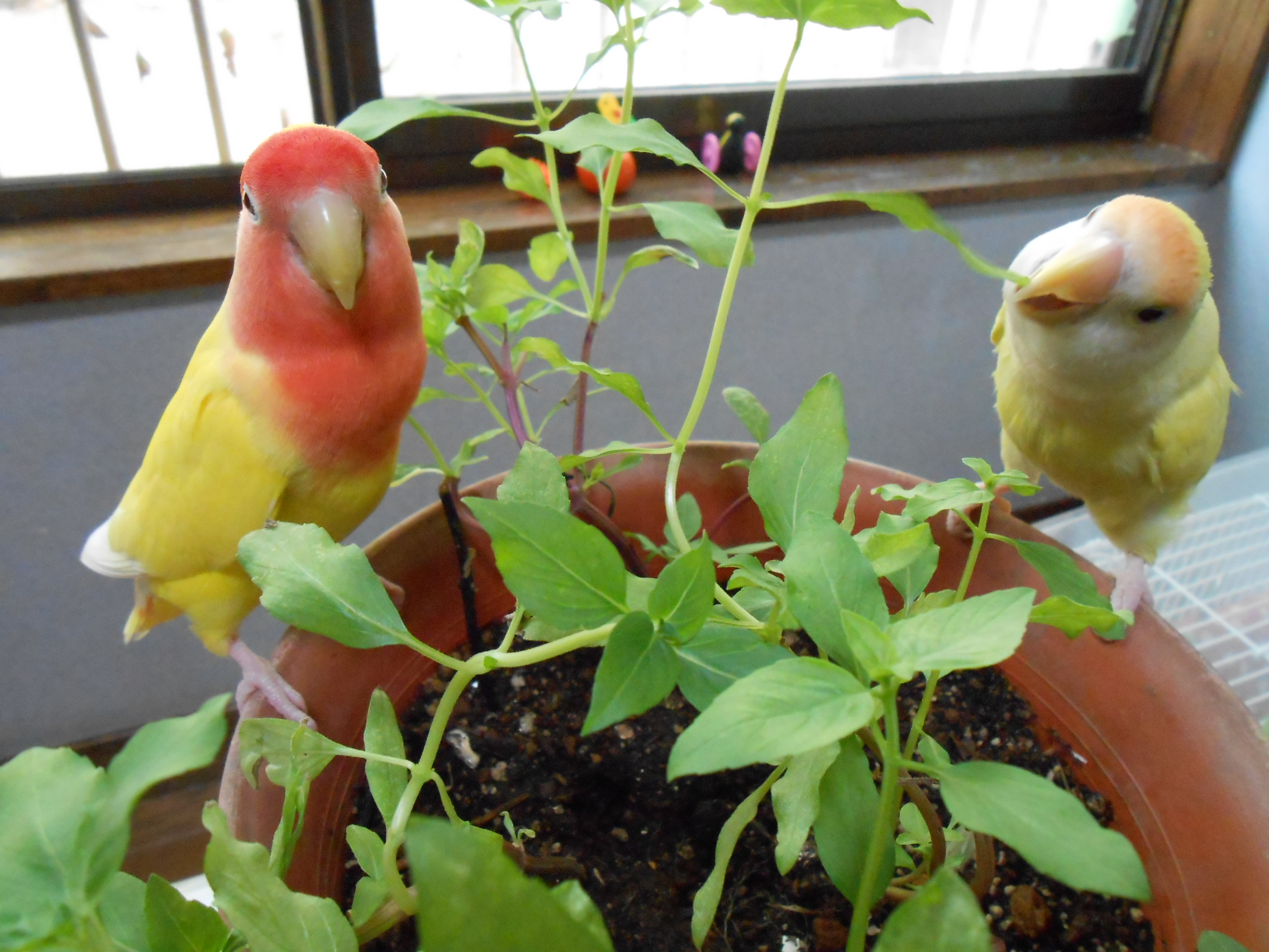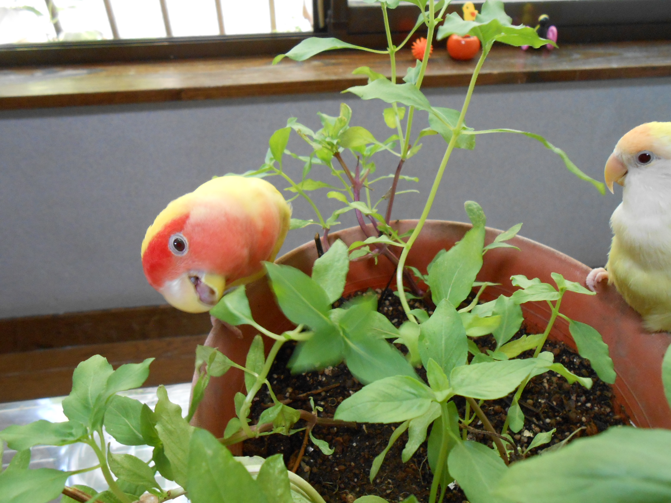 お庭にシソやバジルが生えていましたら(イネ科のぬこじゃらしとかでもオッケーですよー)、鳥さんの健康維持のバリエーションに加えていただいてはいかがですかね?