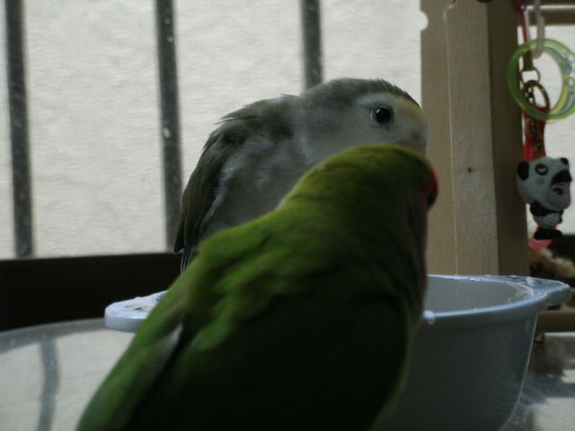 なんかねー、男子インコさんのことは珍しくハラハラと心配しちゃうおばさんなんですのよ(←えこひいき??)