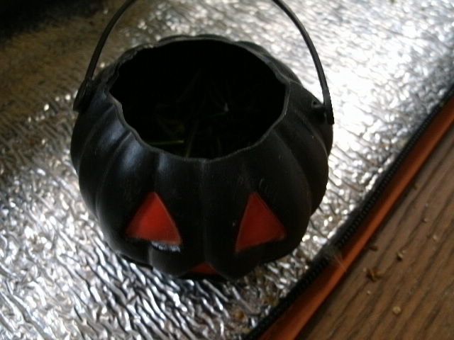 バラけた葉っぱも容器に入れて置いときます
