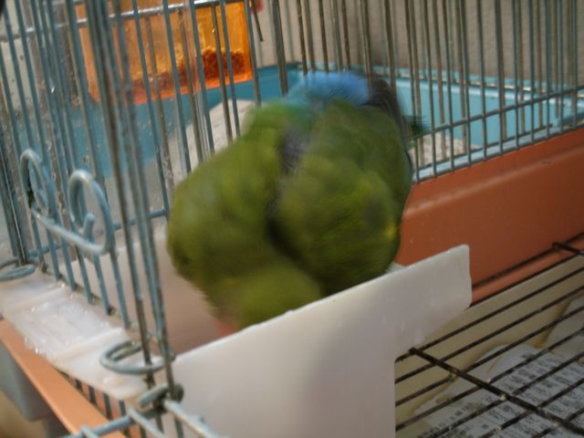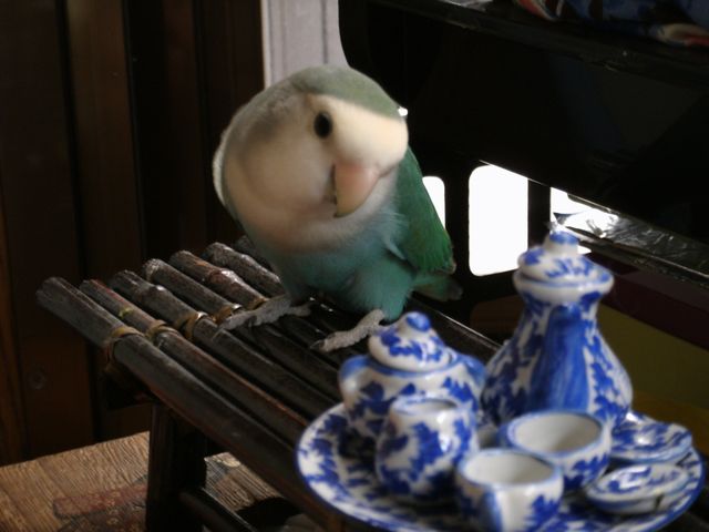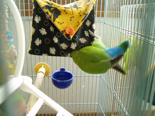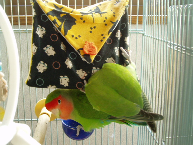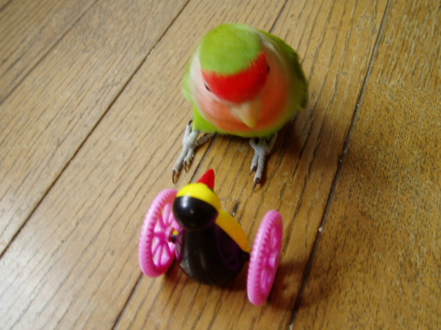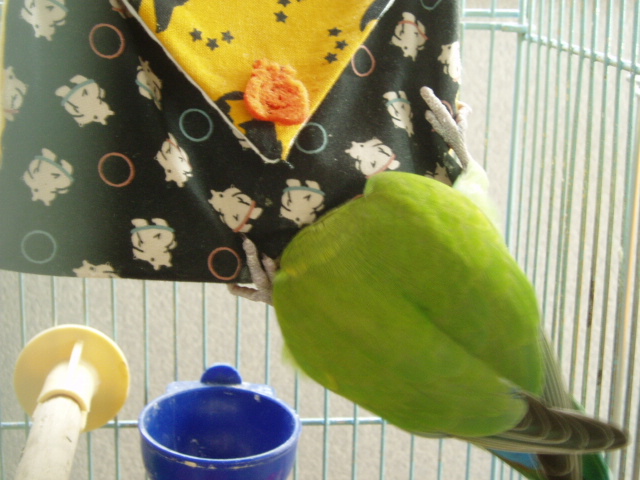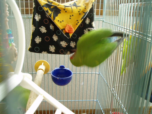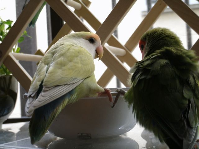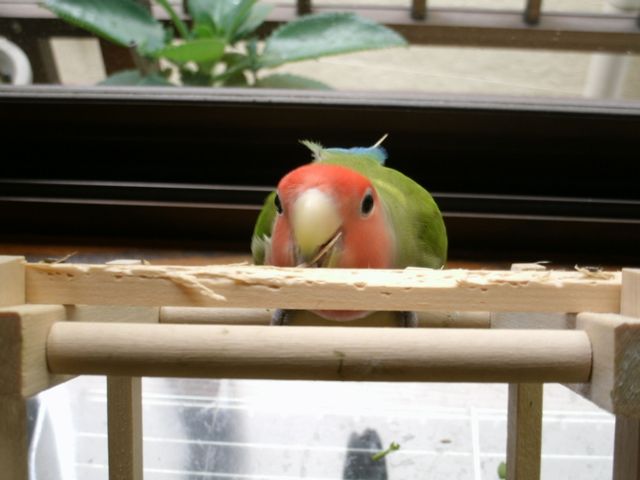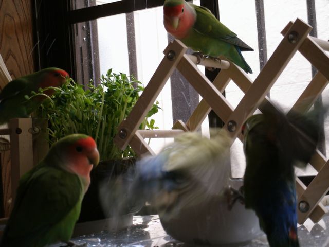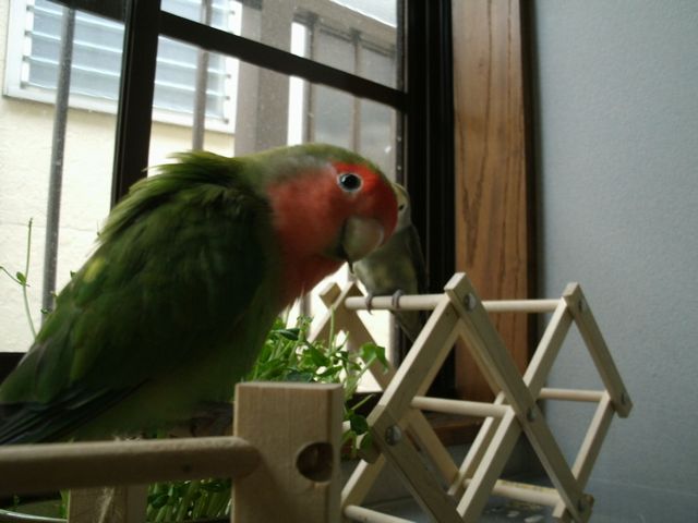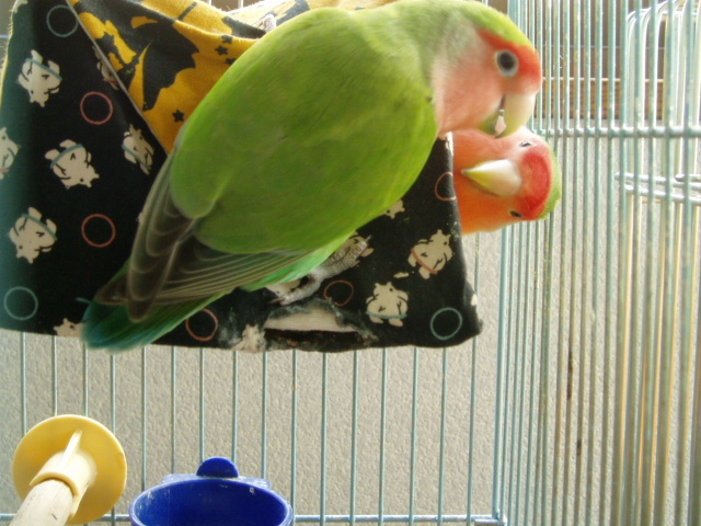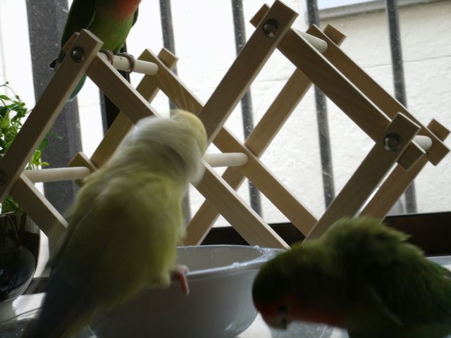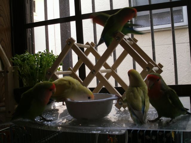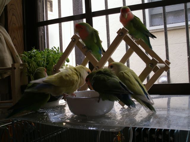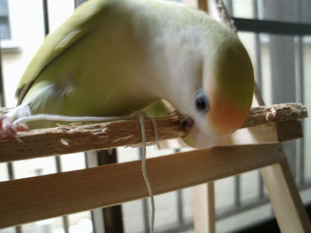 女子インコさんたちはお遊びの時間には遊びそっちのけで忙しく働き出しております。
