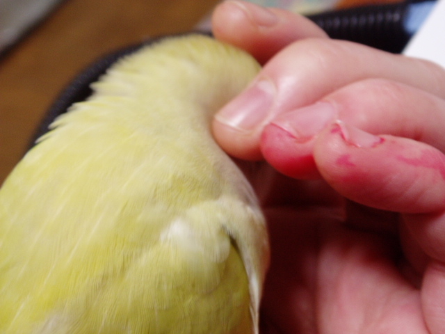 そのうちまるこが腕を噛んできた まるこが噛むときは理由があるのだ。そう、布団の上に手を乗っけていたので通り道がふさがれてジャマだ、という合図らしい。もはやクチバシはコミュニケーションツールですね。