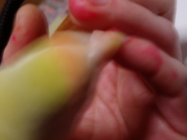 そうです。これが本来のまめちゃんと私の間にあるボディータッチの信頼の絆なんです(事情によりアカチンに染まった手が汚いんですが)。発情期よ、さようなら・・・気の荒い発情女子よ、さようなら・・・やっぱりカキカキっていいですねー♪