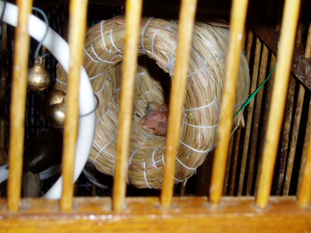 昨日の朝、掛けてある布団を取り掃除をしてご飯を出していつものとおりの順番。洗濯物を干しながら目をやると、なんか雰囲気が違う。水浴びの様子が無い、ご飯にがっつかない なんだろ? 近くに寄って観察するとつぼ巣で寝ている母さん・・・・動かない。