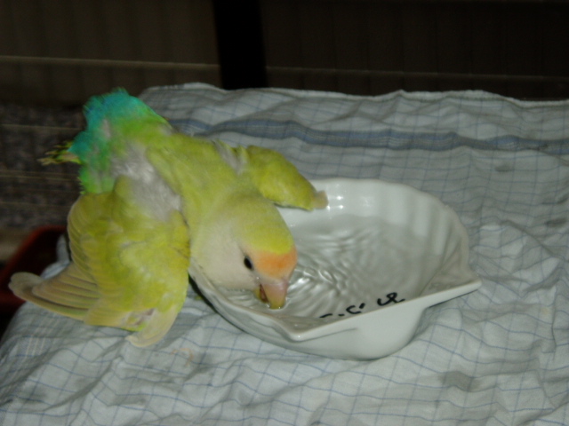 こういうダイビング姿勢が普通かと思い込んでましたが、鳥さんそれぞれですもんね。で、さっそく新しいお風呂へ、どうでしょう なっつ ちゃん