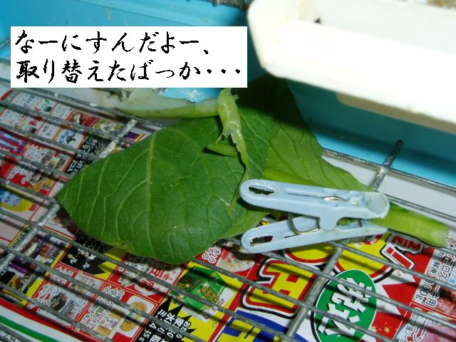 そんなおいしい小松菜さんを食べるのは、まずケージにセットさせてください