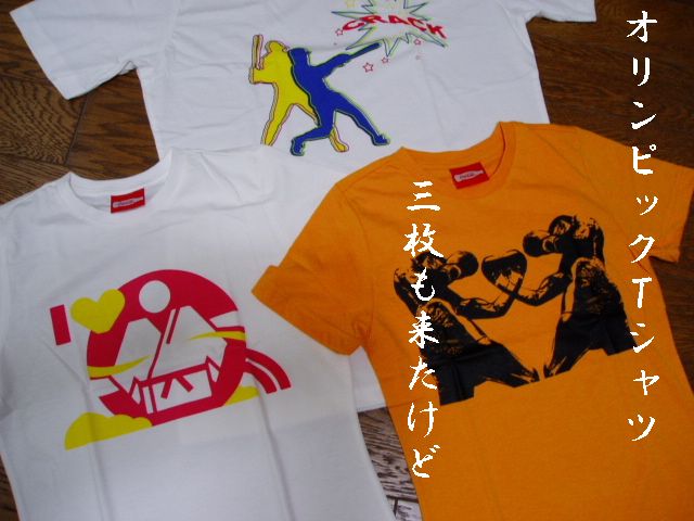 Tシャツが届いてた。コカコーラの景品のしかもオリンピックのヤツ。えー、もうとっくにオリンピック終わっちゃってんじゃーん、なんだかブームが去ったあとの流行り物を手にしているような・・・しかも3枚