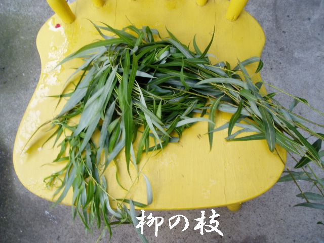 今日のお掃除おばさんのミッションはみんなのおもちゃを作ること、と決めていたのでいざ材料確保。公園に行き柳の枝を頂かなくては、辺りに誰もいないのでとりあえず柳の木に一言断って‘小鳥さんのために少し枝を分けてください’と。物わかりのいい柳さんだったので私にもお土産をくれた・・・家の玄関に入ろうとしたら足の甲に大きなナメクジがのっていた。柳さんThanks!!