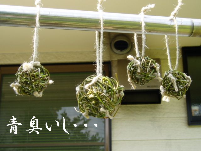 おもちゃを作るからって今日はお仕事お休みじゃないよ、柳の枝持って出勤。お昼休みに製作開始、くるくるまるめて天日干し。まだ青臭いので乾燥して硬くなったら破壊用のおもちゃになるのだ・・・小動物用おもちゃのコピーだったりするんだけどね、単価0円てことで。