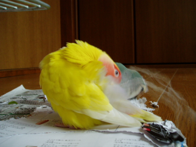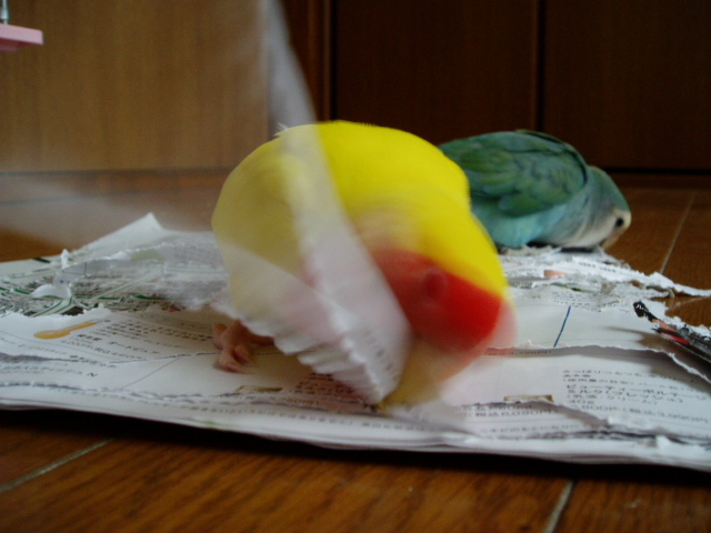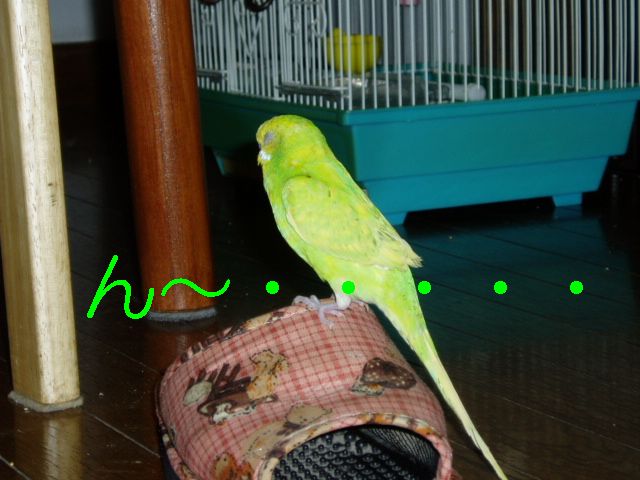タケちゃんは気まぐれ天使さんなので、あそぼうよ!と誘ってもしらんぷり・・・シカトかい!!ひょっこり出てきたかと思うと鳥かごの周りを一周して自分のお部屋に戻っちゃういけずさん