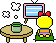 あれ?また出てきたの・・・あ・そぅ。テーブルの下で一人何かを考え・・・