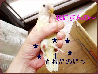 なっつのあんよ、久しぶりに見たねー、よかったねーって・・・あれれ?すごいガニマタだ・・ま、いっか。止まり木にはつかまりずらそうで、ただただふんばってやっと立ってるなっちゃん。逆戻りさせたくはないのでこれから筋トレとリハビリを考えなくては・・・