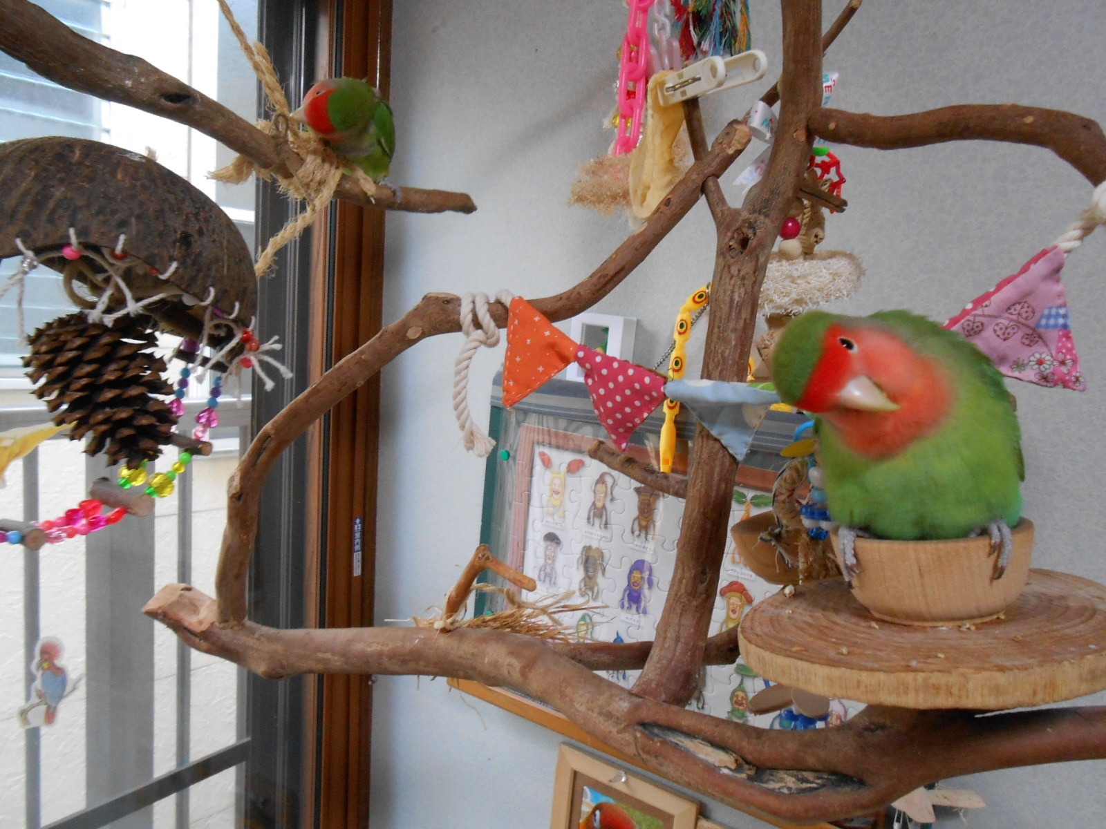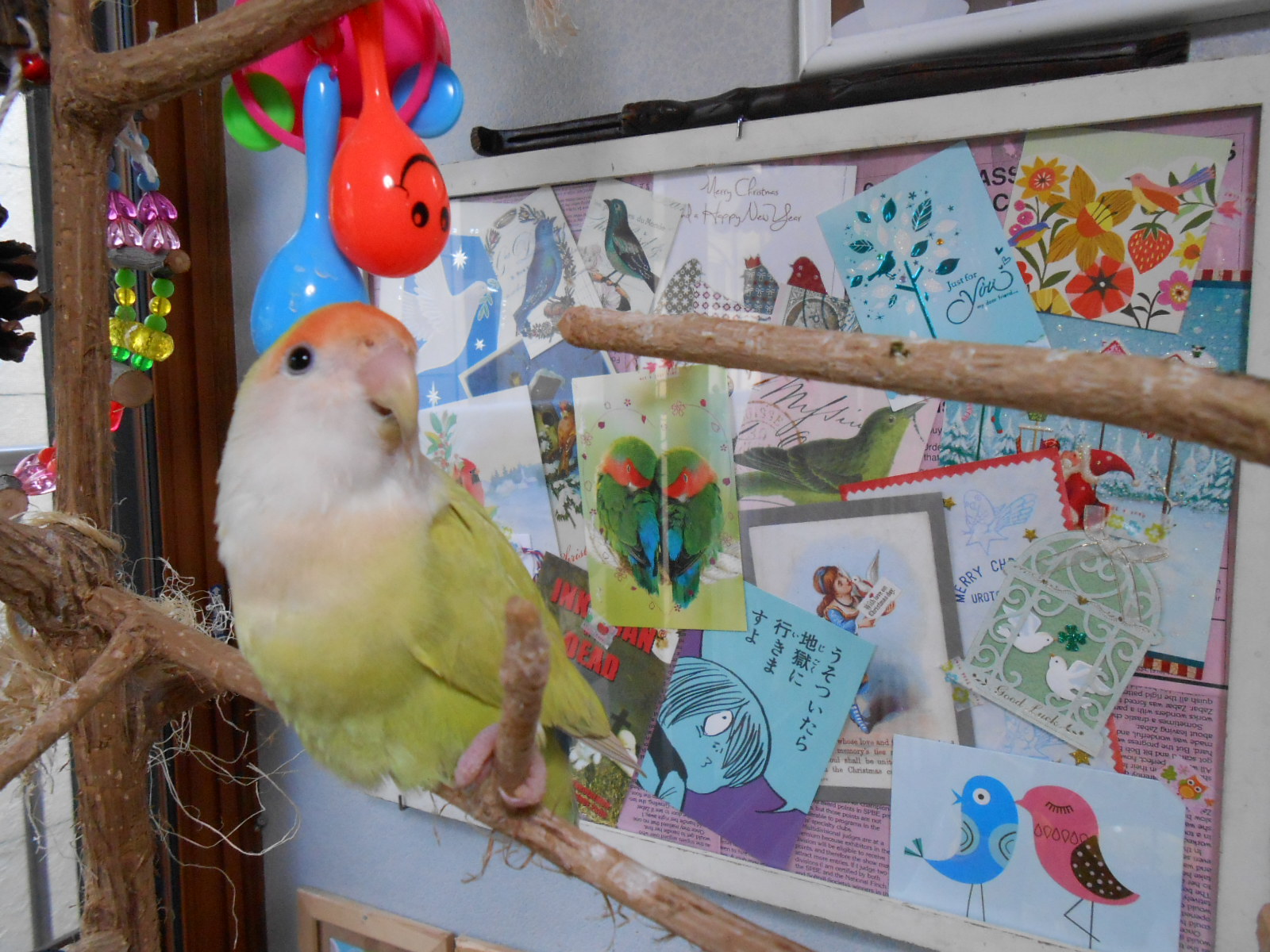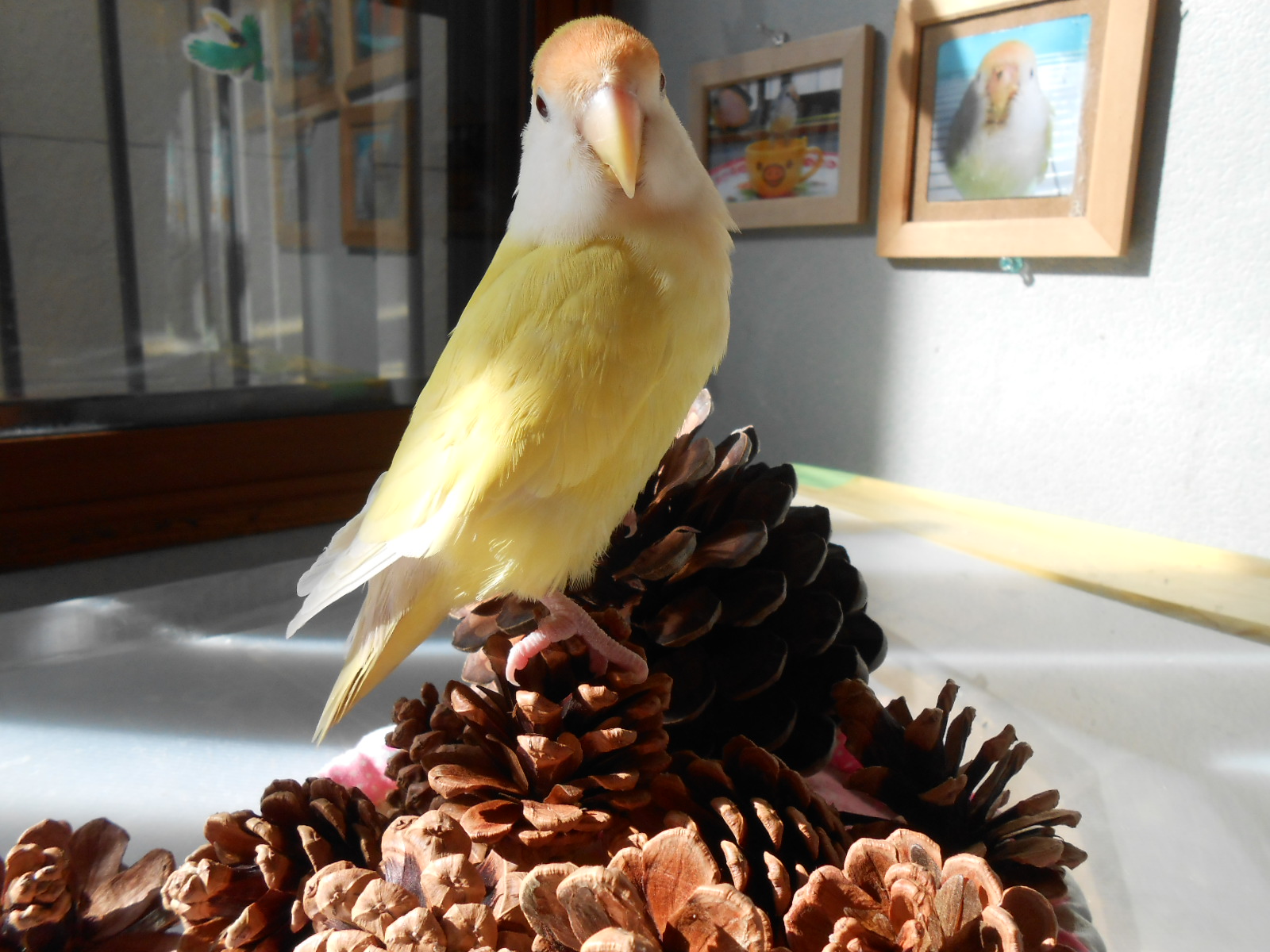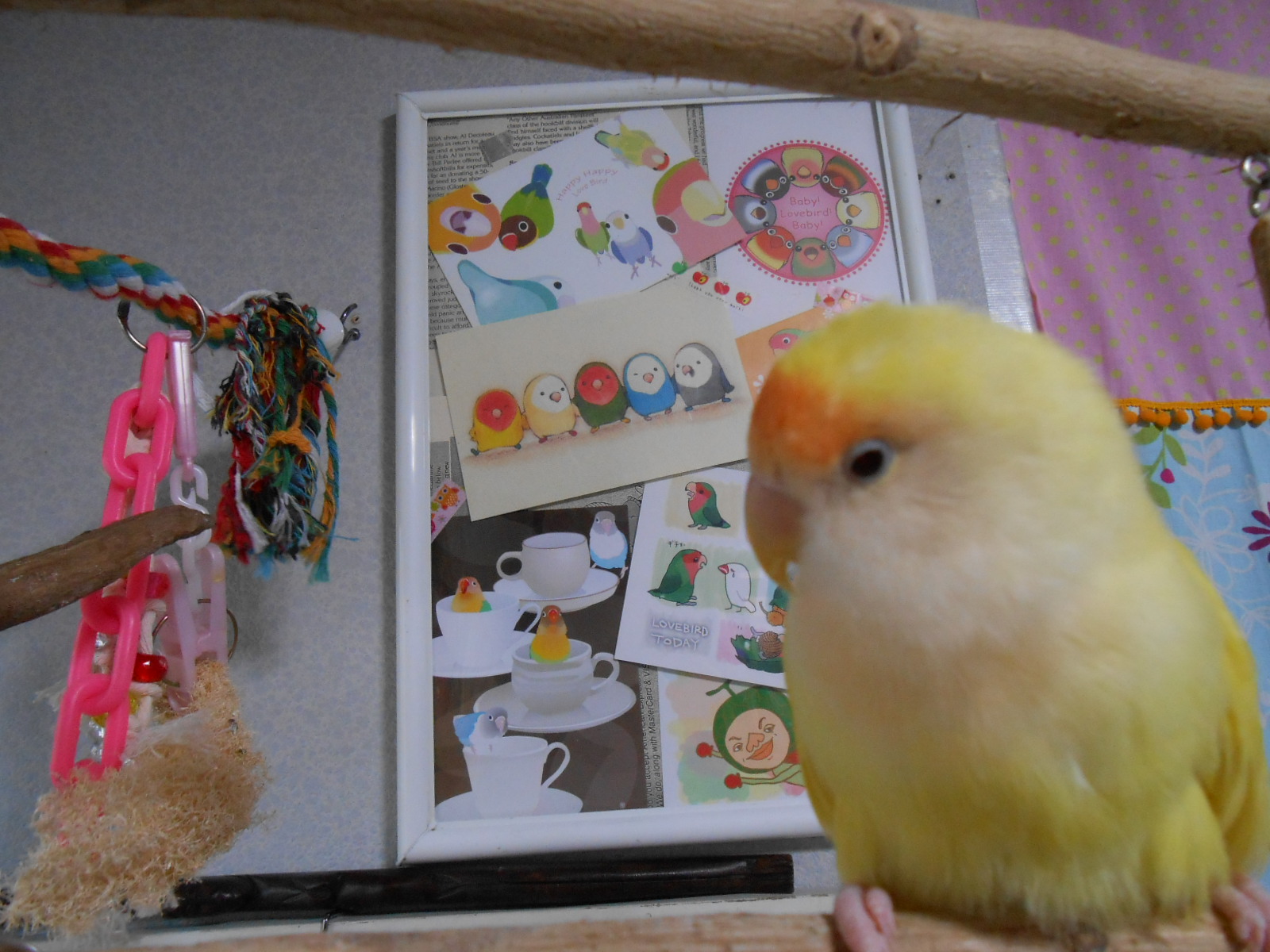 何枚かフレームに入れて鳥さん部屋に持ってきましたら、可愛いではないですかっ!