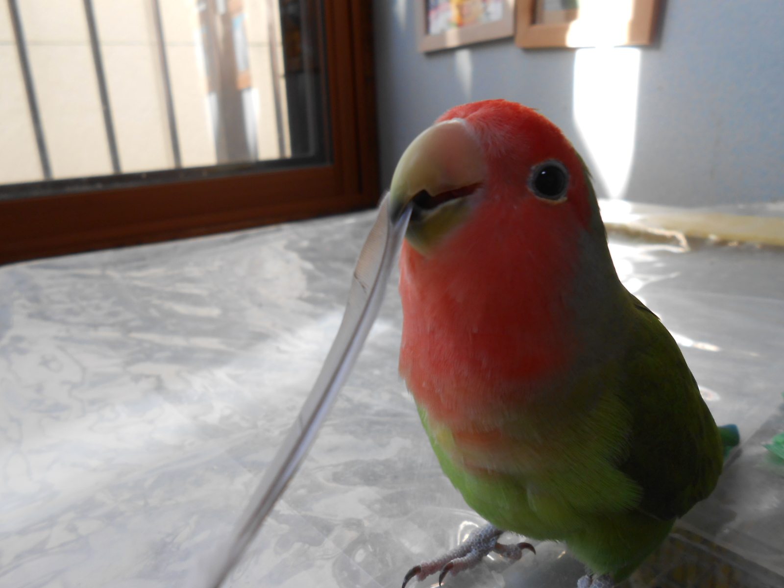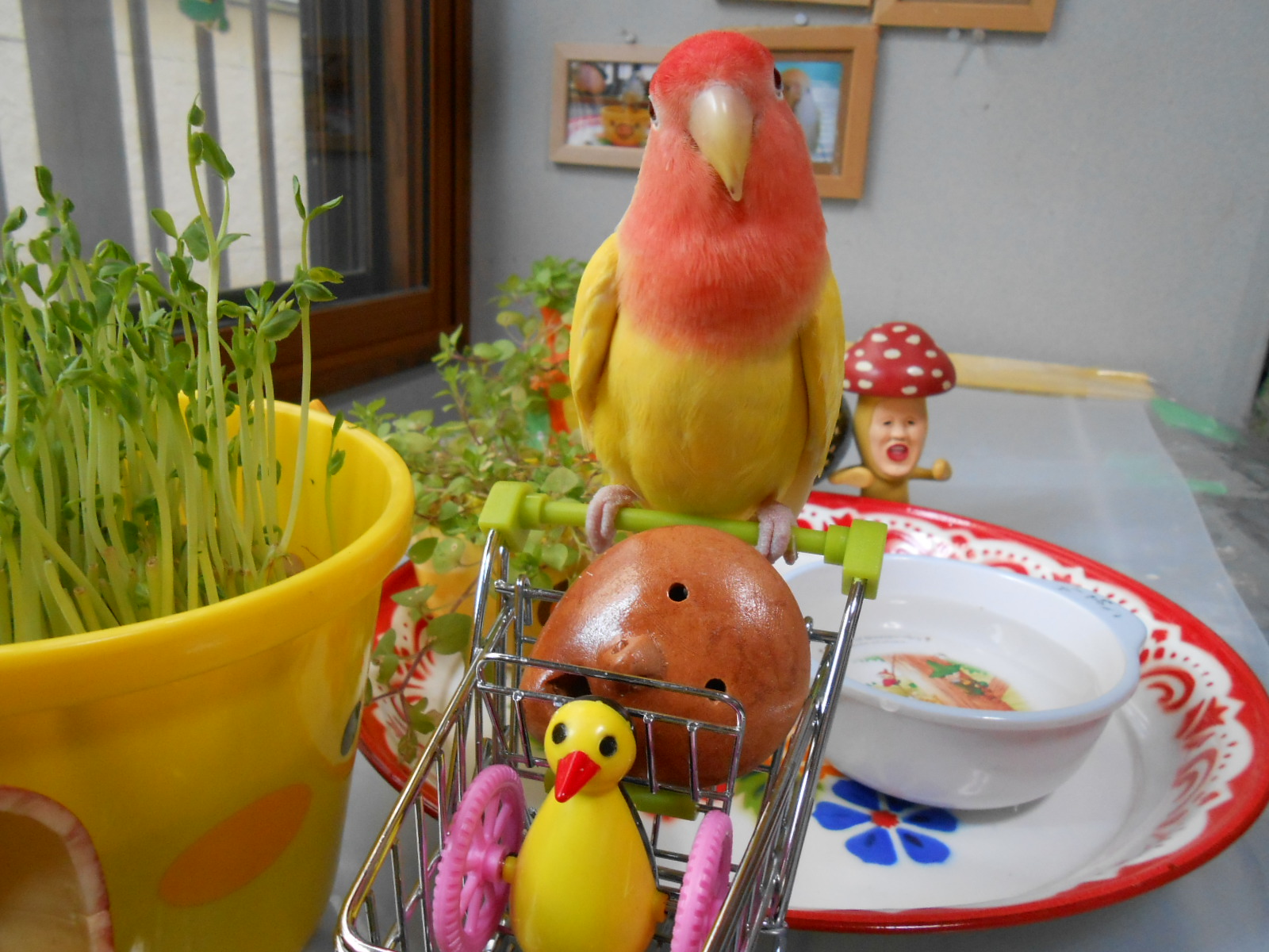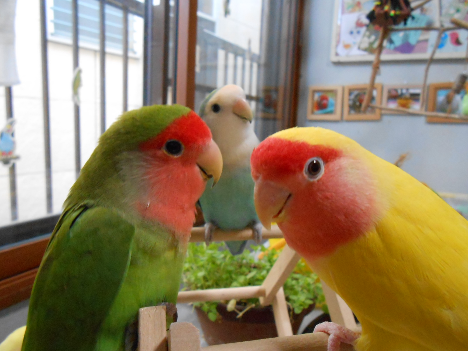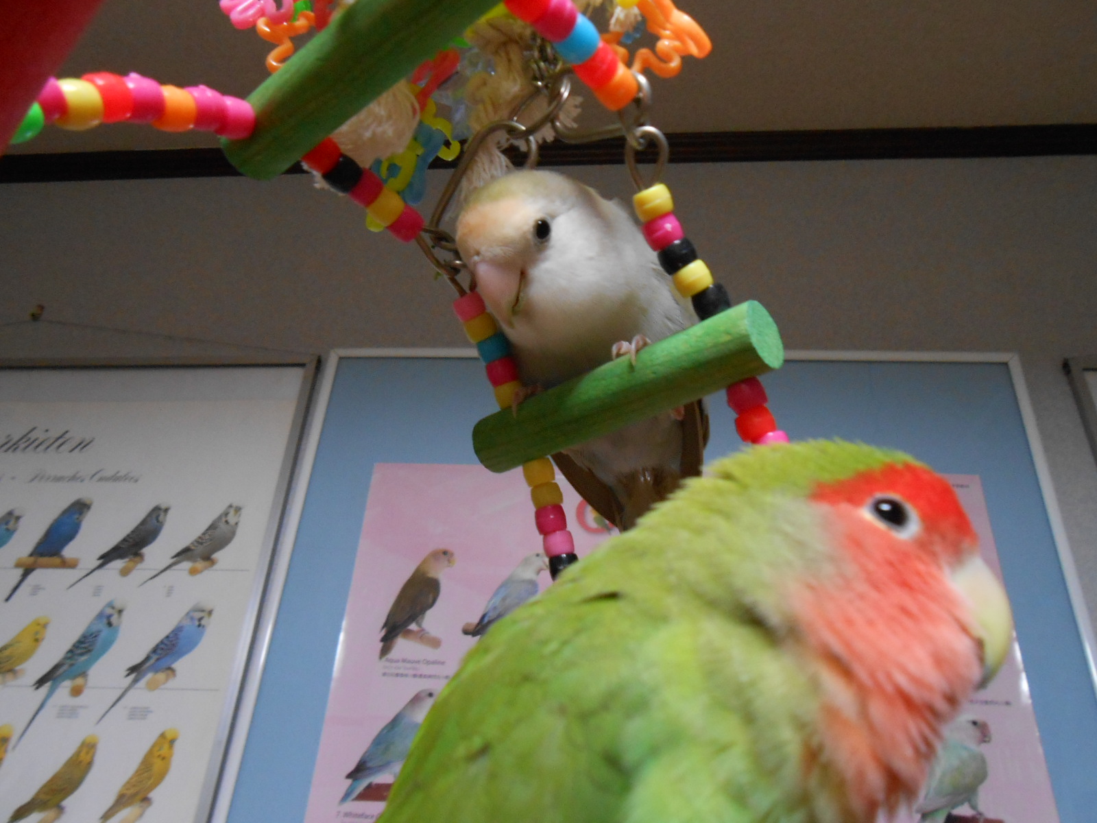 何枚かフレームに入れて鳥さん部屋に持ってきましたら、可愛いではないですかっ!