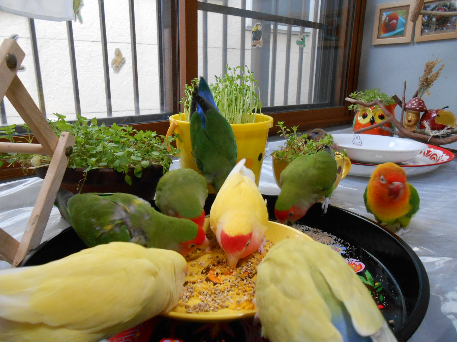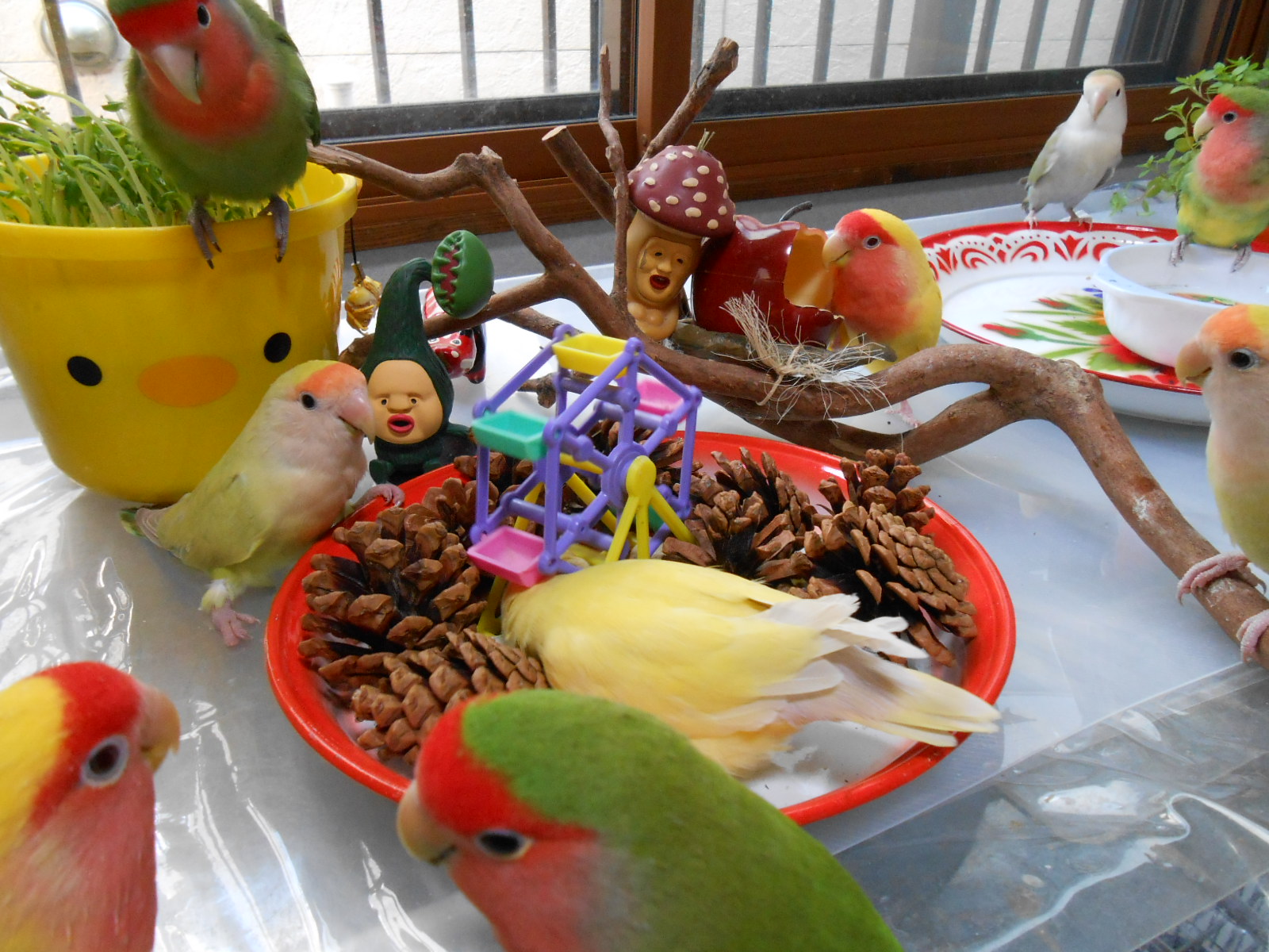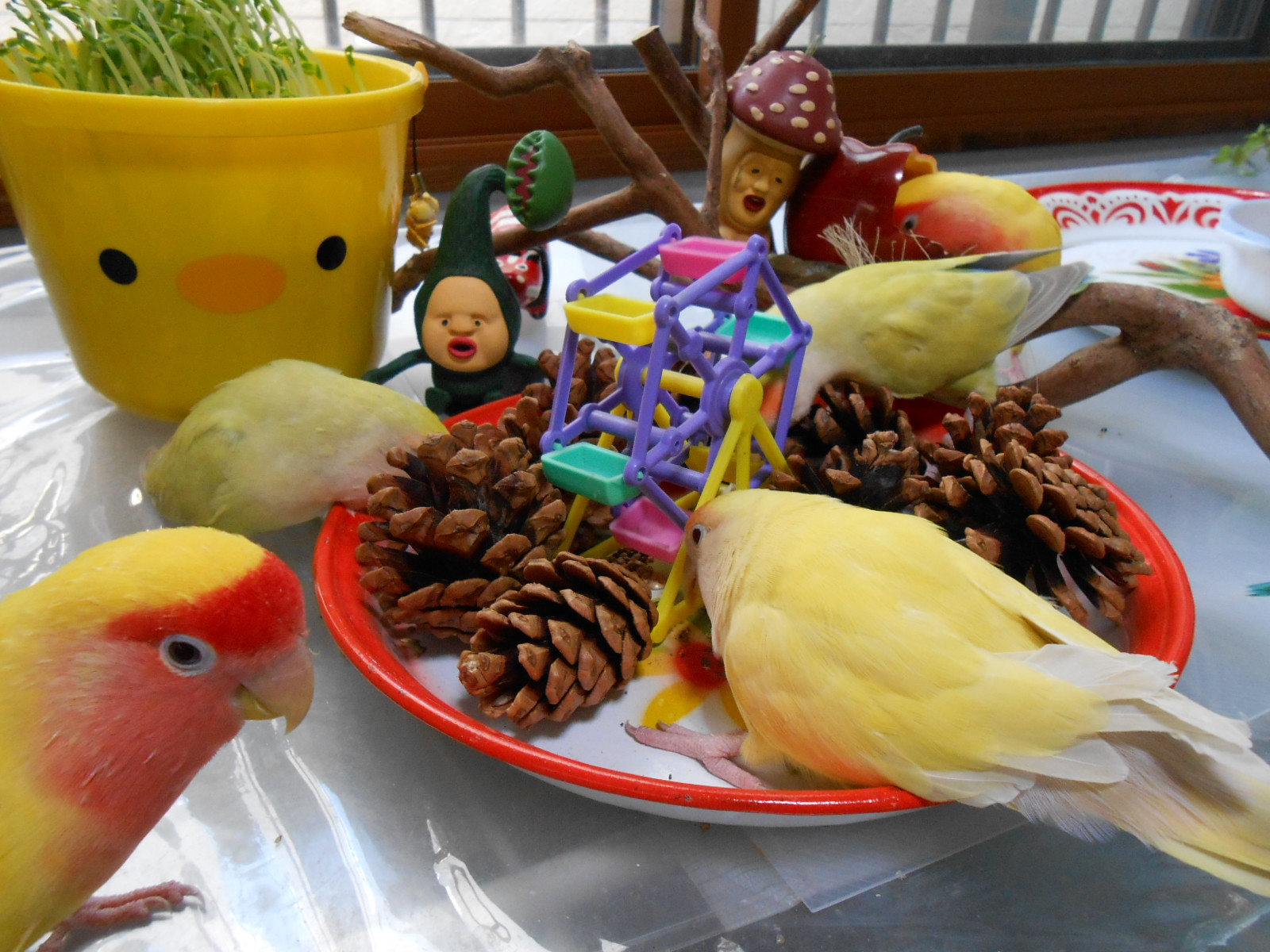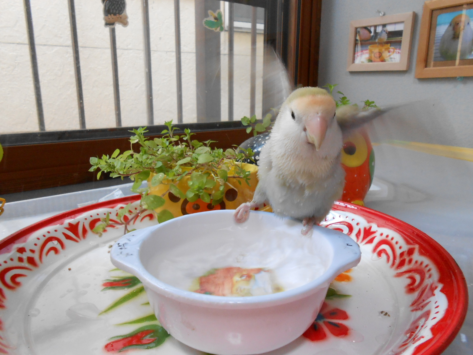 何枚かフレームに入れて鳥さん部屋に持ってきましたら、可愛いではないですかっ!