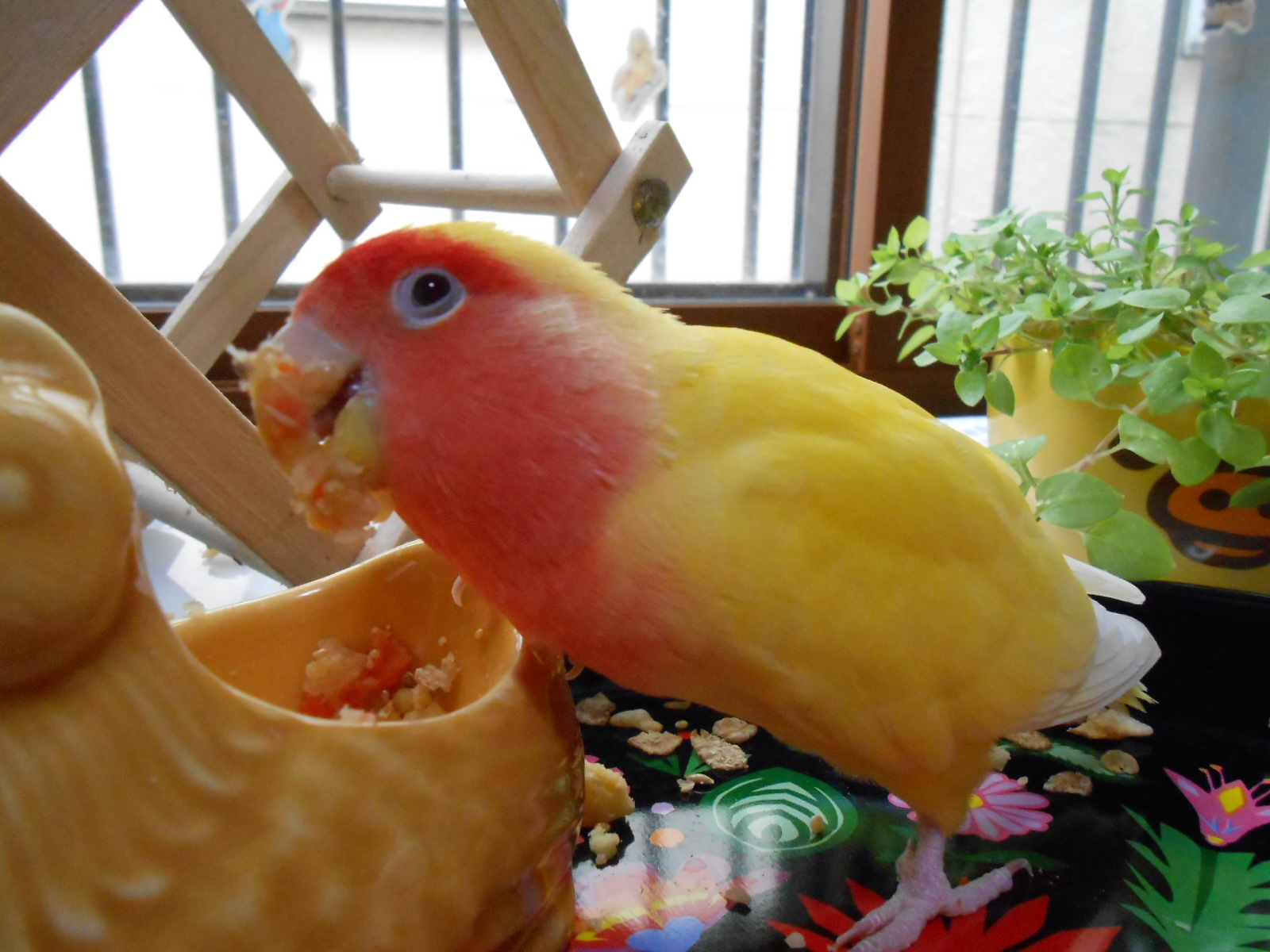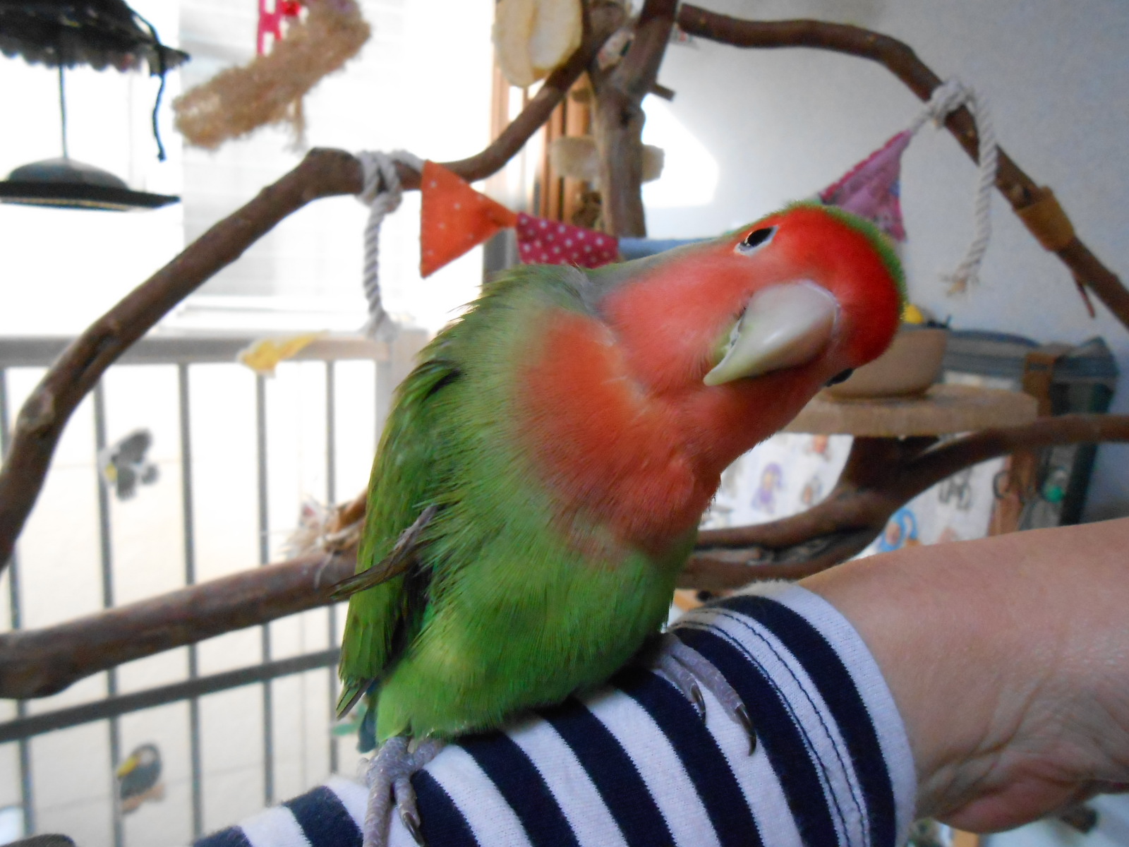 制限してるつったらご飯量はそりゃもーキッチリピッタリ量りますんで、リフレッシュ放鳥時間もこのように