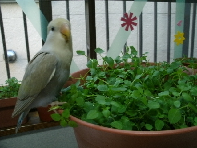 いつも鳥さんが水浴びしたあとの水をかけてますんで、立派に育っております。