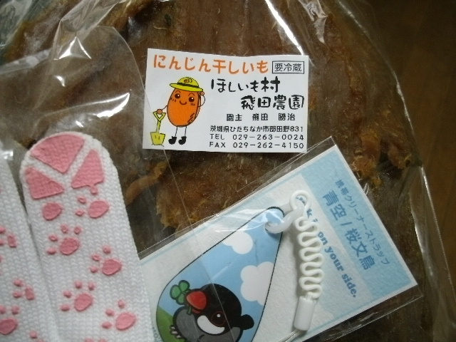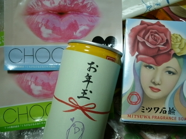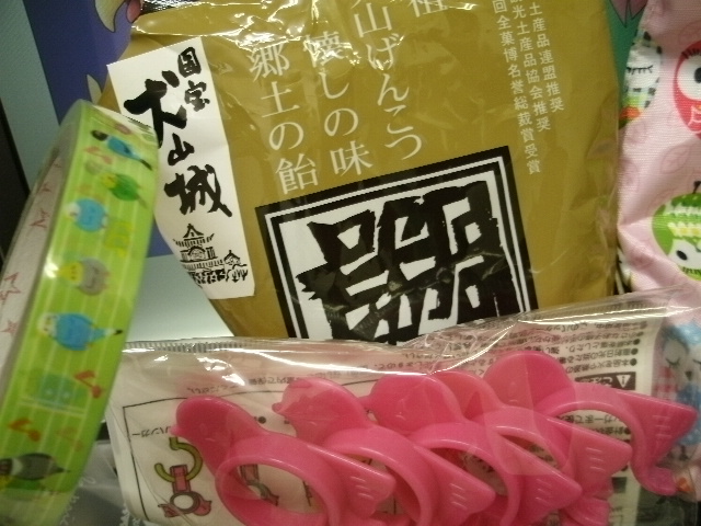 鳥さんイラストのテープとかふかふかタオルとか物干し竿がっちりホールド鳥さんとか鳥さんマイバッグとか、またしても生活必要品すべて鳥さんシリーズでセットになったの頂いちゃいました~~。鳥あえずげんこつ飴止まりません、うまいですっ!(画像のやつもすでに袋開いてたり・・・ナイス郷土菓子