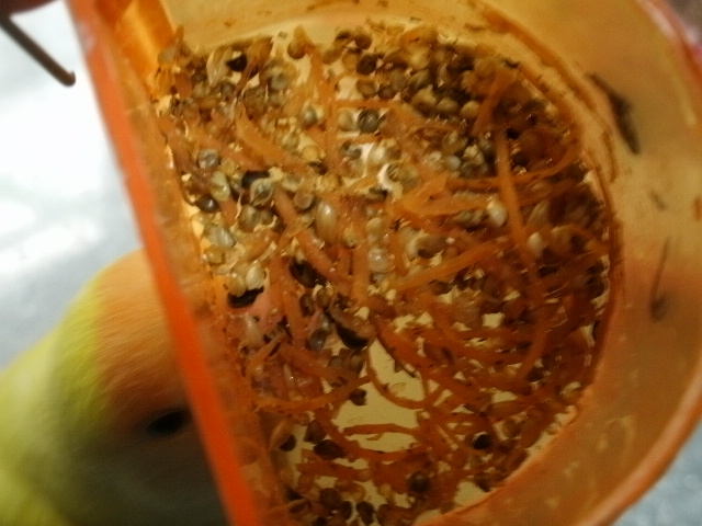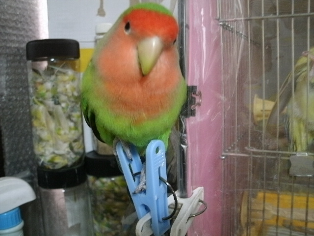 ↑追っ払っても追っ払っても好みの女子さんのケージに張り付くので、洗濯バサミに(洗濯バサミでビニール留めとかないと侵入しちゃうのでー)止まれないようにともう一個洗濯バサミを重ねて阻止しましたら、