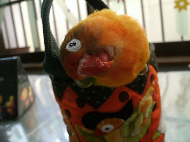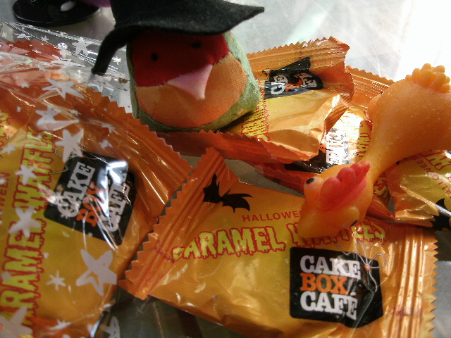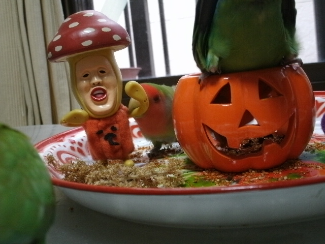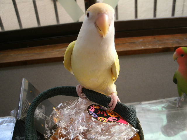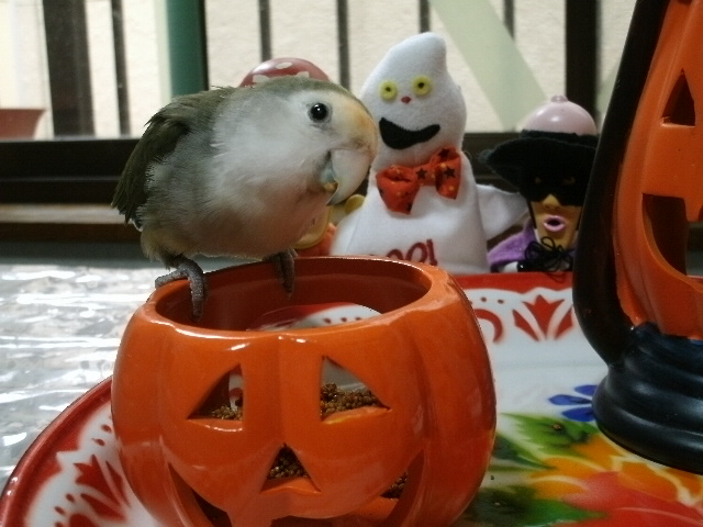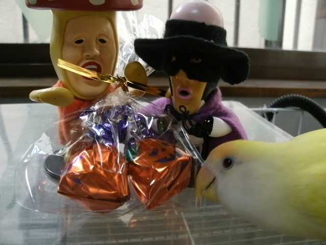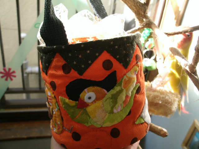 こちらは『とりあそび』のmiwさんからのプレゼンツのハロウィンバケツなんですけども、miwさんとこのブログ見てて、ショップ見てて(十鳥都というハンドメイド鳥グッズのお店でございます~~)