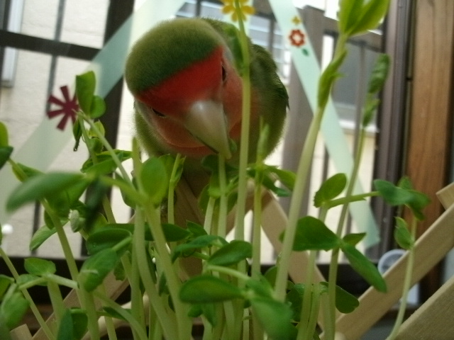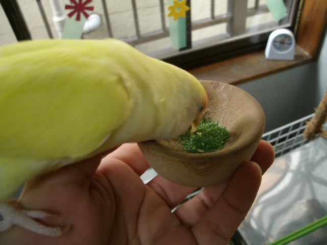 小鳥さんたちの毎日のお食事に、少しでもバリエーション付いたらばと思いまして(買うのもアレなので)試して作ってみましたが、まー自分で言うのもなんですけども・・・舐めてみたらハーブというよりただ青臭いような~~~