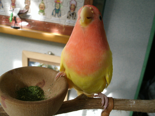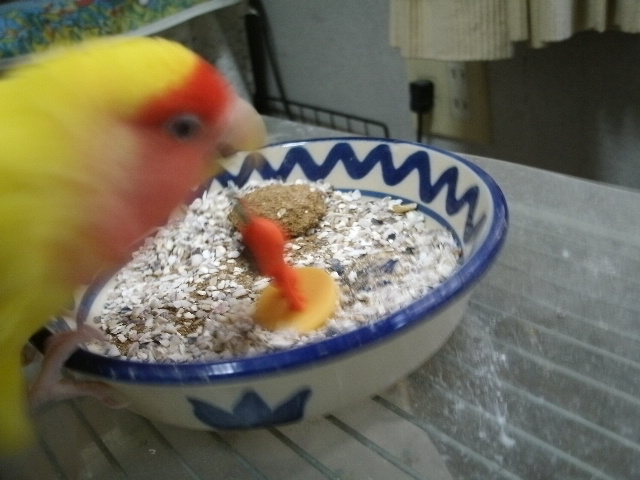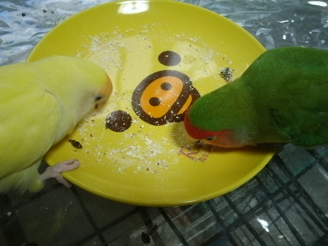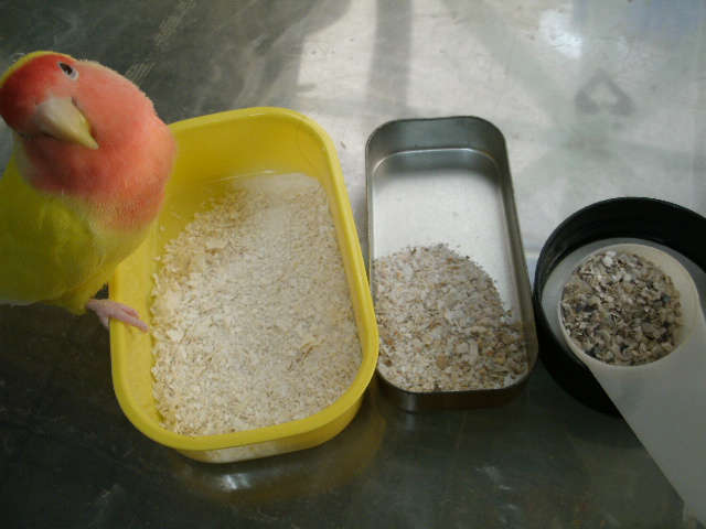 いくつかの容器のひとつにボレー粉や鉱物なんかがあると思いますが、鳥さんはカルシウム摂取も大事ですからね、おばさんもちゃんとやってますよ~♪