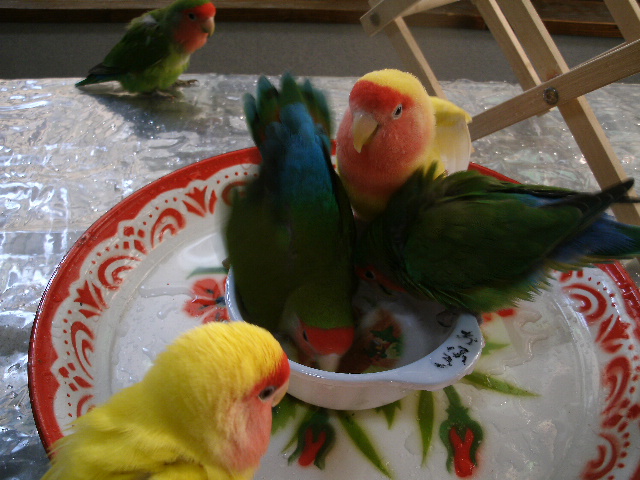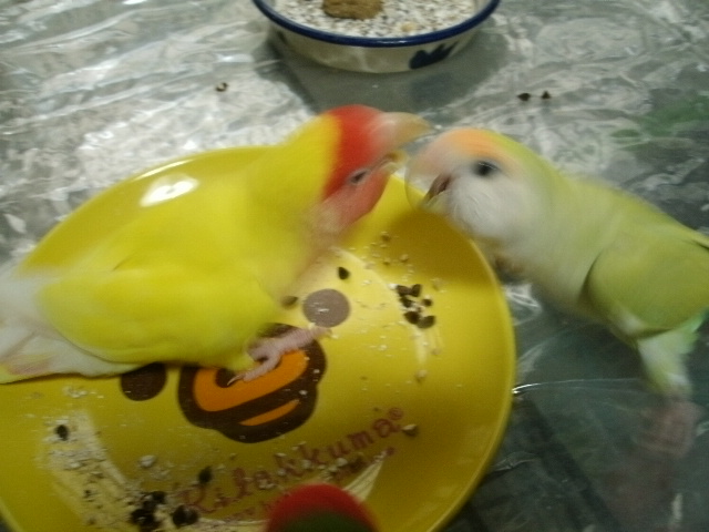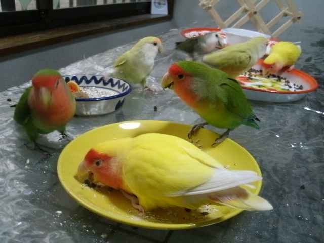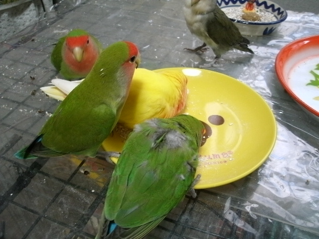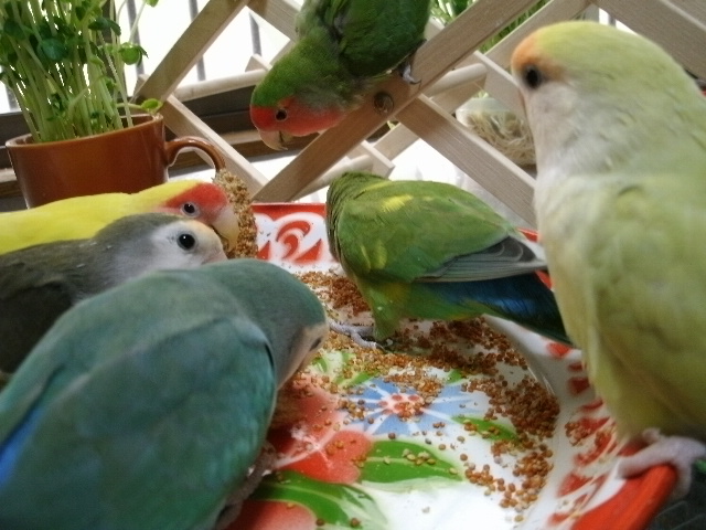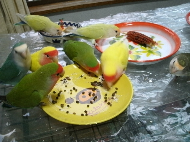 今日も公園の集団鳩さんのような集団コザクラさんたちがエサをついばんでおります。