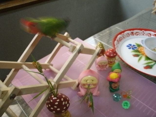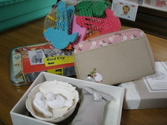 まぁ婦女子ふたりと鳥さん一羽交えまして、あれやこれやたわいもない話なんかして、鳥グッズいっぱいもらったりして、パンやケーキ買ってもらったりして、そして作ろうと思ってなかなか進まなかったアクセサリーパーツ作り手伝ってください!とかになって「いいよ~」と二人で始めたものの、おばさんのチョーいい加減なところを見せ付けてみたりしてー。楽しかったわけですよ♪