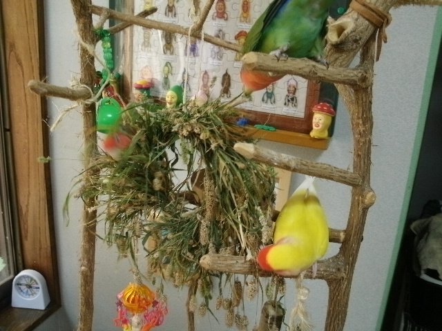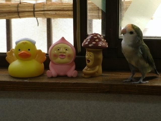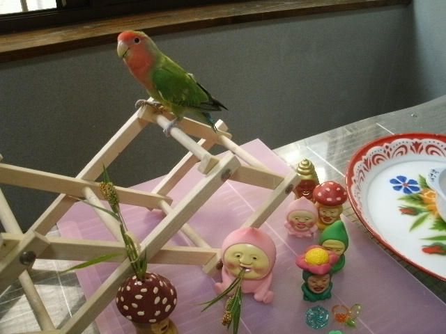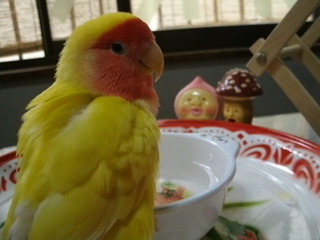 (鳥餌上に乗ってますがー)みきちゃんちの愛鳥さんのくぅちゃんに初めて会った時は黒足袋履いてうっすらヒゲ生やした若造でしたが、