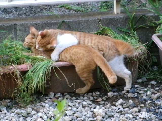 どうやら仔ぬこがホモのプランターを寝床やら遊び場にしてたらしい。