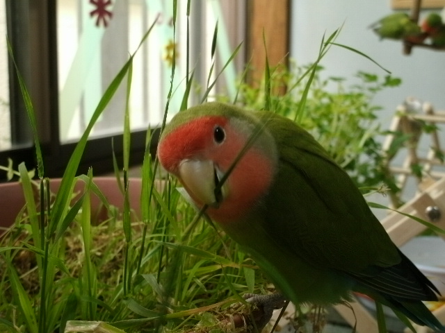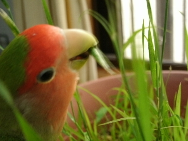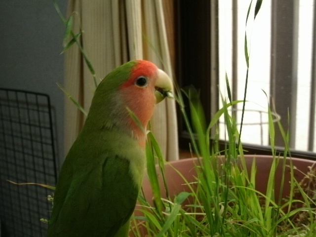お野菜苦手なおコには青い穂がお野菜代わりになるそうで、これまた鳥さんの遊び道具としてホモノは人気ありますので、お野菜なかなか食べてもらえなくてーとお悩みの飼い主様はぜひともホモノ育てをオススメいたします。土の上に蒔くだけ~~~。